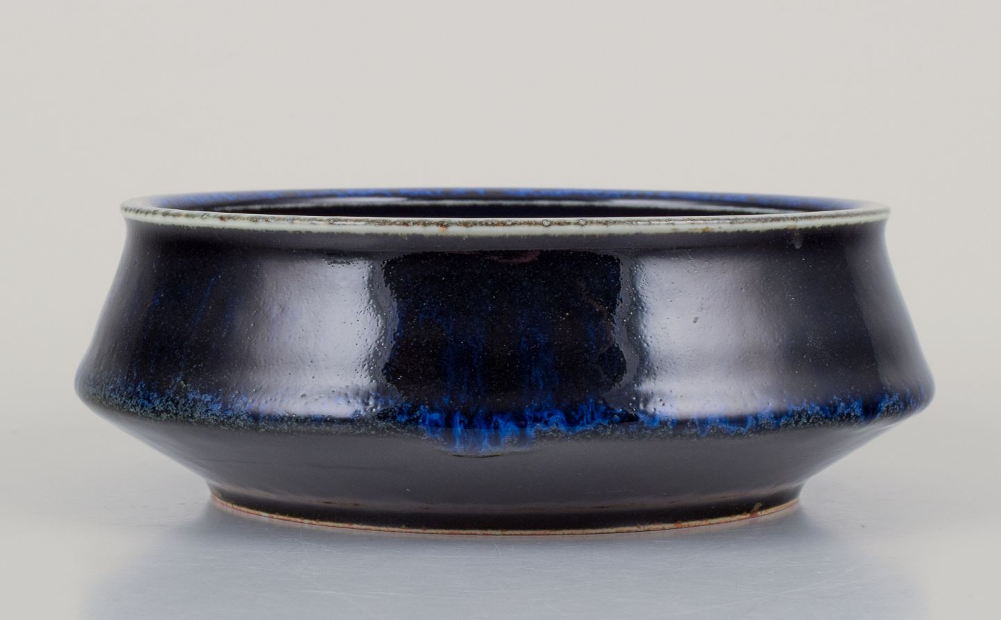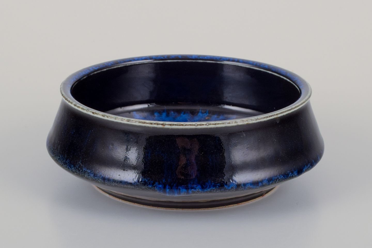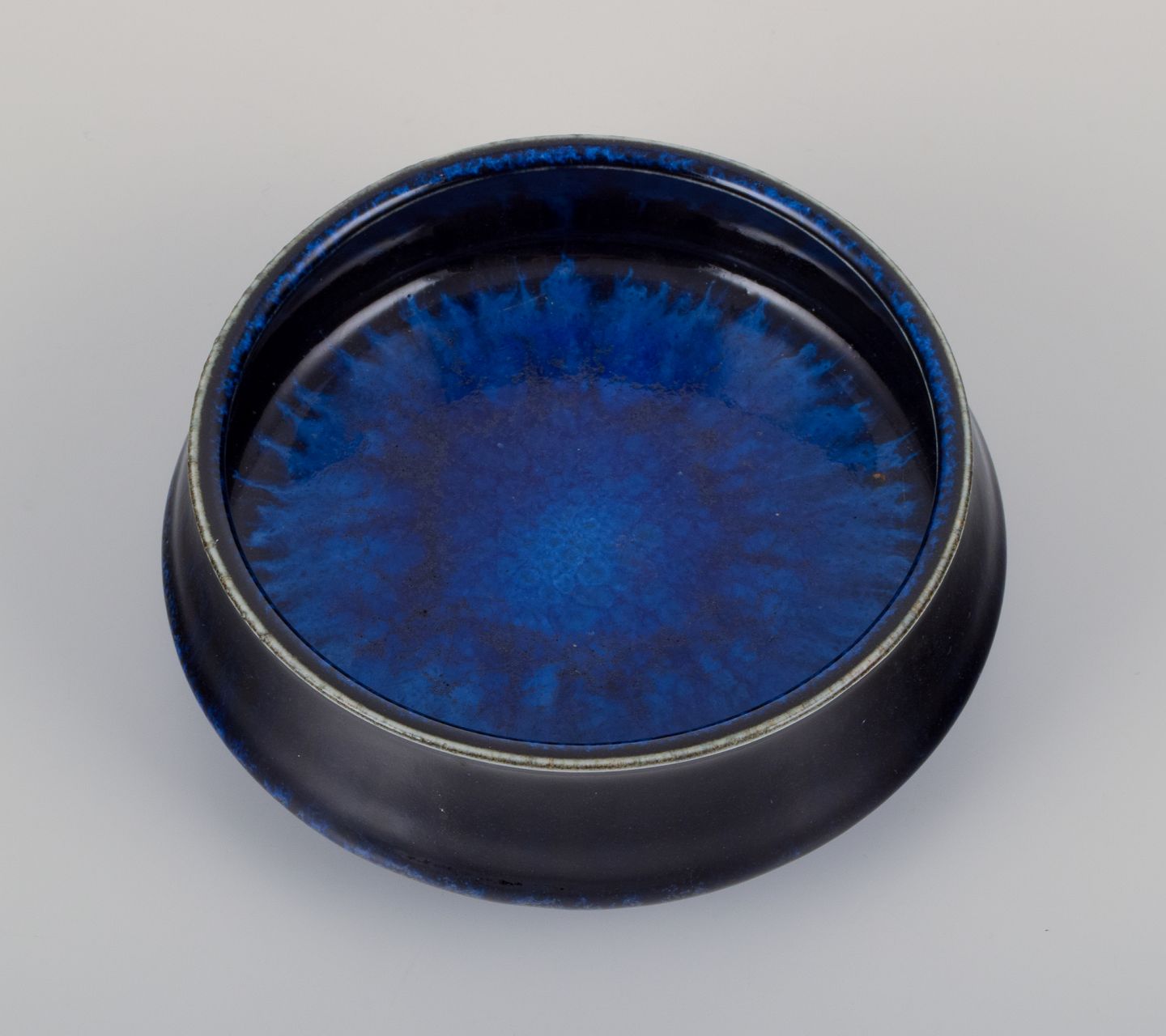 Carl Harry Stålhane for Rörstrand. Keramikskål. Glasur i blålige nuancer. Midt 1900-tallet. Stemplet. Perfekt stand. Første sortering. Mål: D 15.5 cm. x H 5,5 cm.