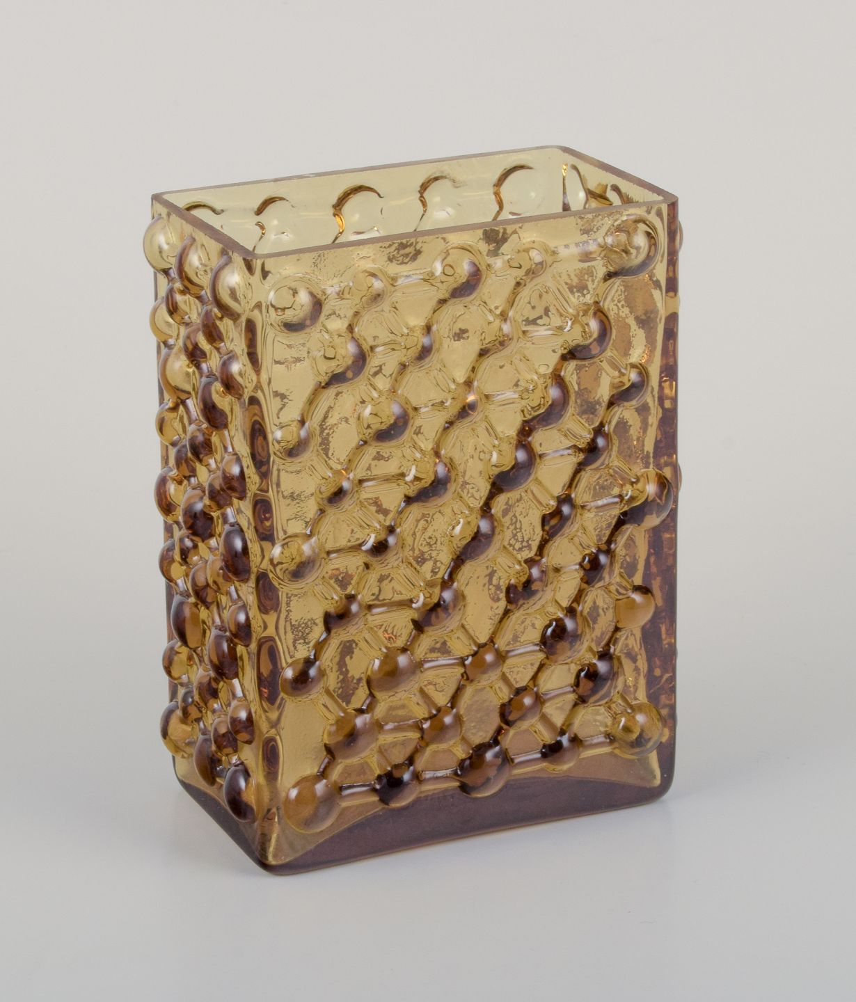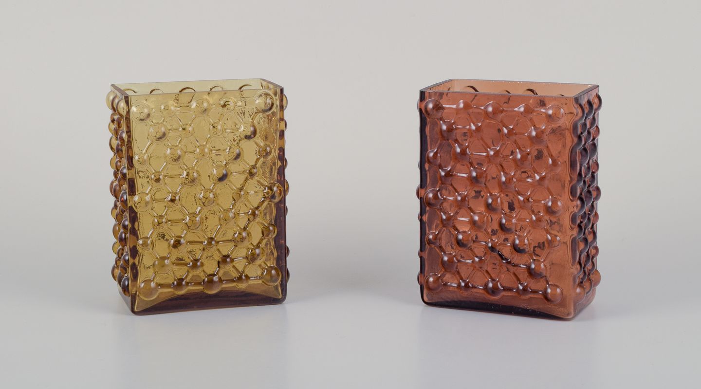 Fåglavik, Sverige. To kunstglasvaser. Modernistisk design med forbundne cirkler. Forskellige farver. Ca. 1970’erne. Perfekt stand. Mål: B 11,0 cm. x D 7,0 cm. x H 14,0 cm.