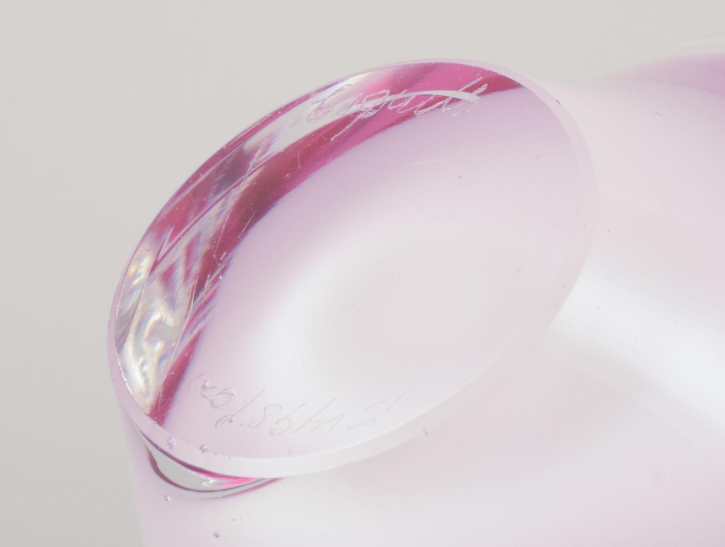 Paul Kedelv for Flygsfors, Sverige. To "Coquille Fantasia" kunstglasvaser. I lyserødt, lilla og klart glas. Håndlavet.