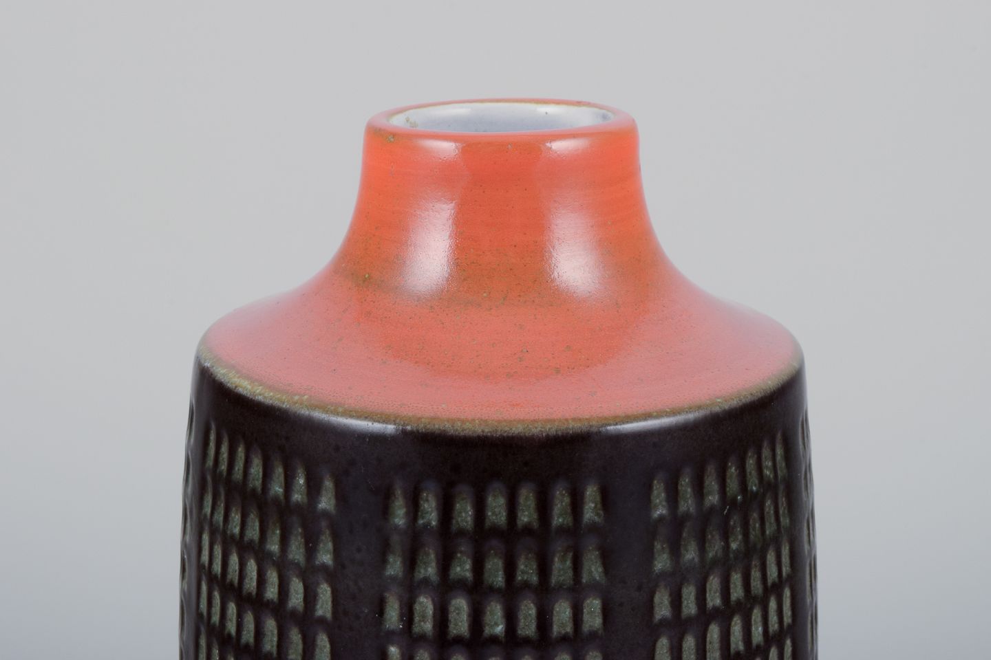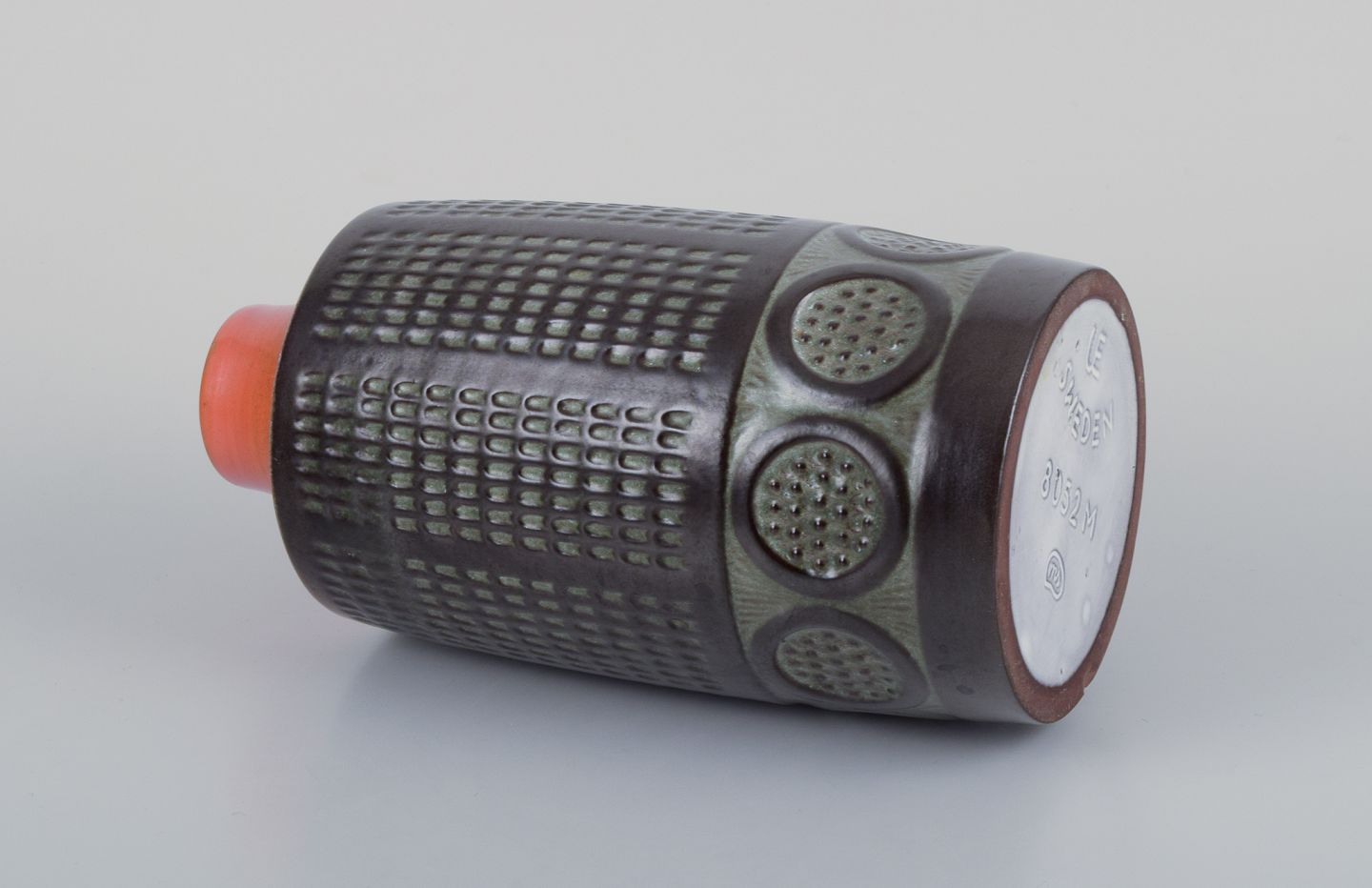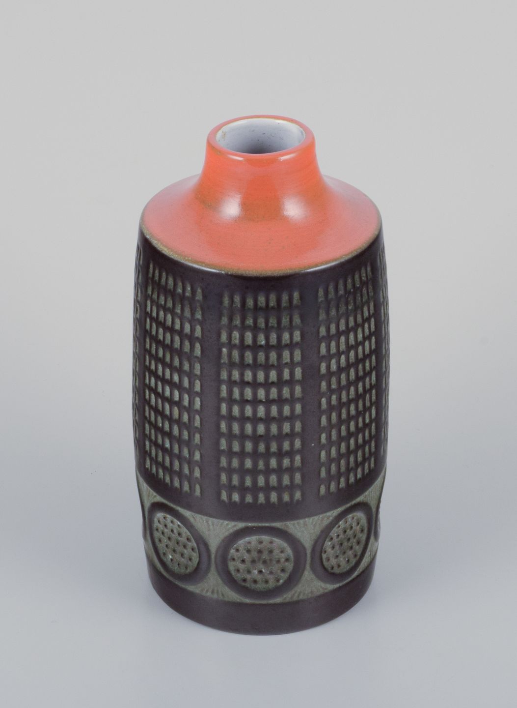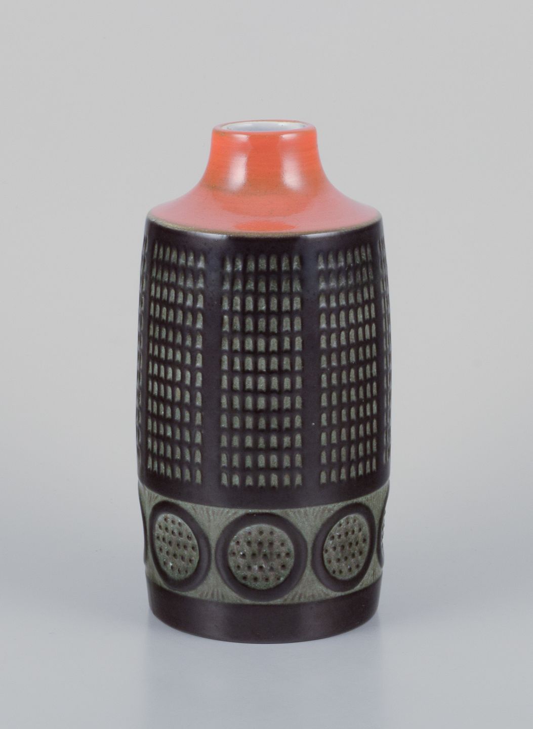 Mari Simmulson (1911-2000) for Upsala Ekeby, Sverige. Keramikvase i modernistisk stil. Glasur i orange og brune toner.