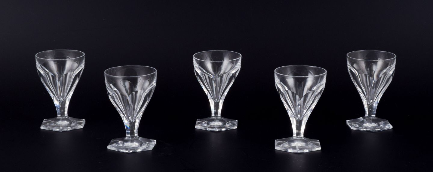 Baccarat, Frankrig, et sæt på fem Art Deco glas i klart krystal. Facetslebet. 1930’erne. Perfekt stand. Mål: H 9,3 cm. x D 6,0 cm.