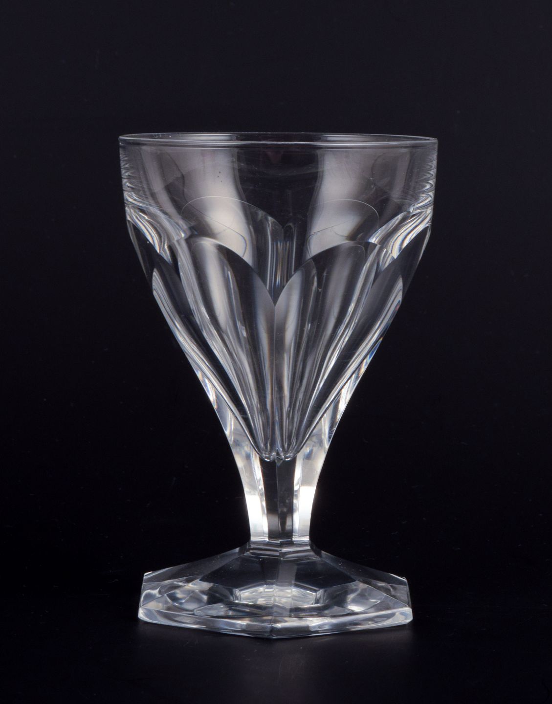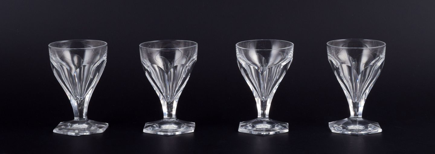 Baccarat, Frankrig, et sæt på fire Art Deco glas i klart krystal. Facetslebet.