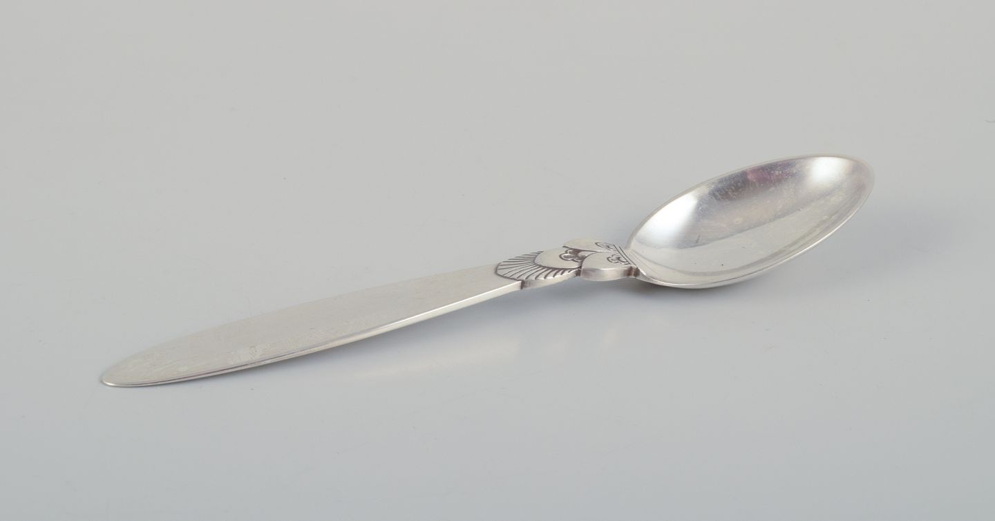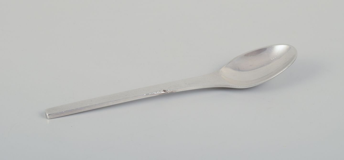 Fem kaffeskeer og en marmeladeske i Sterlingsølv og tretårnet sølv (830).