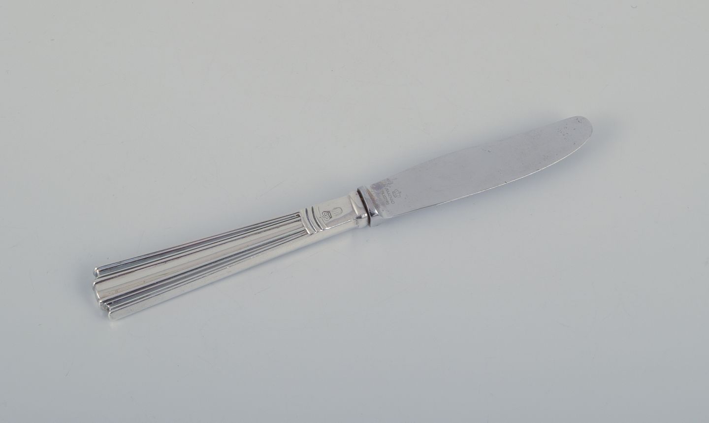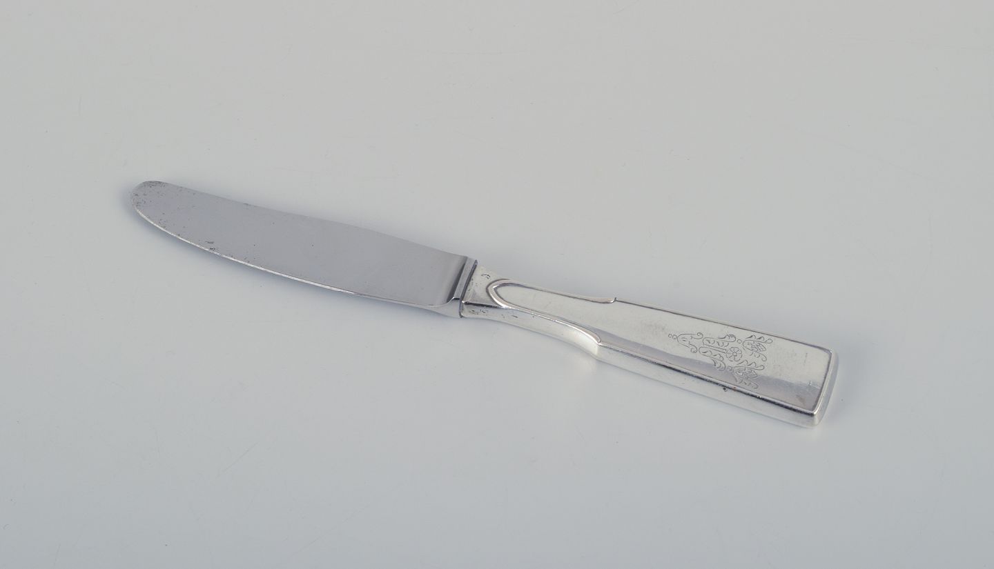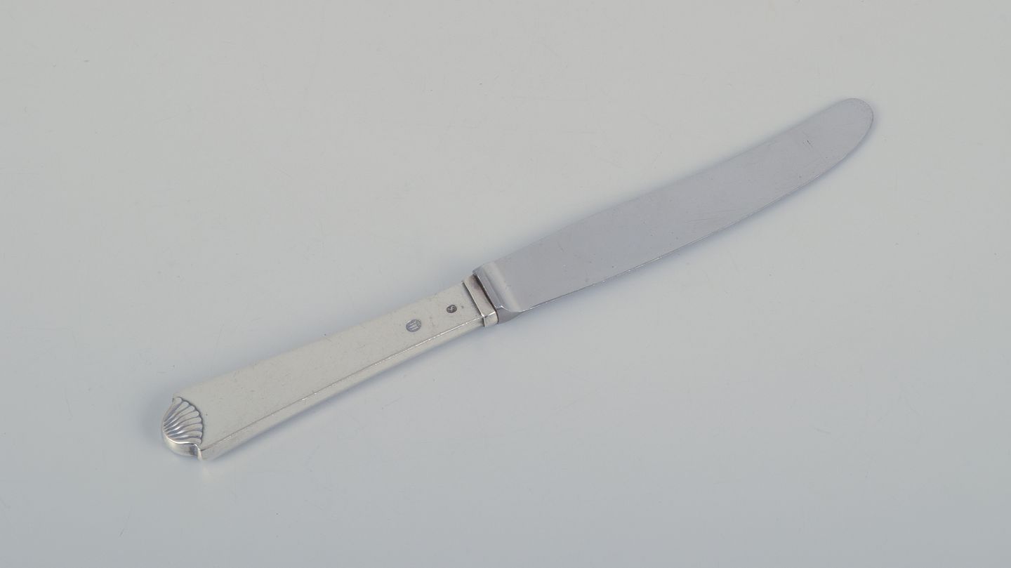 Cohr med flere danske sølvsmede. Syv frugtknive i tretårnet sølv.
