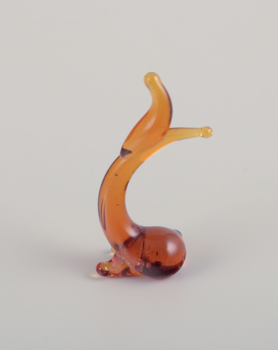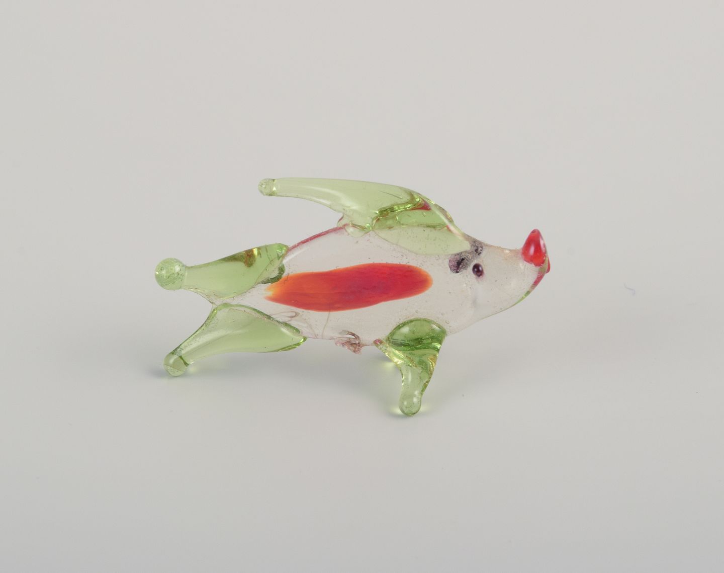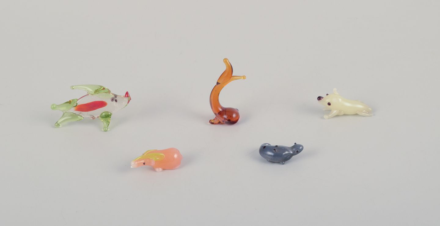Europæisk glaskunstner. Fem miniature-dyr i kunstglas. Håndlavet. Ca. 1970’erne Perfekt stand. Fisk: H 1,7 cm. x L 3,0 cm.
