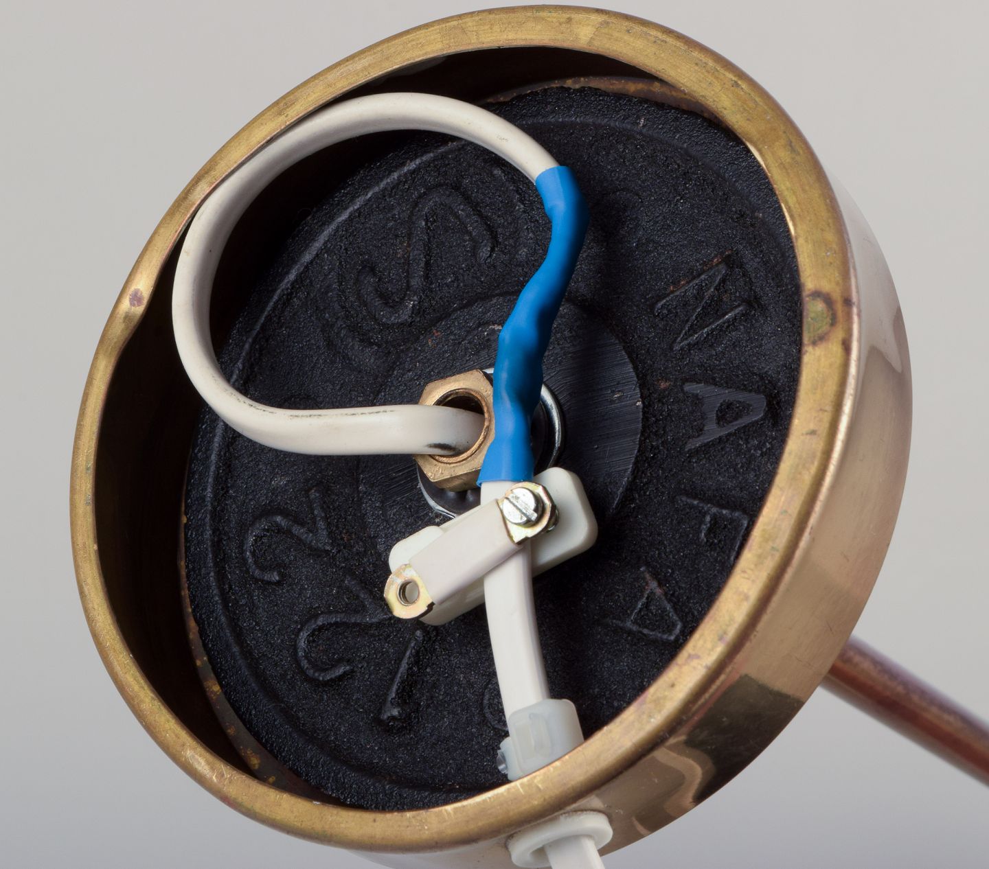 Nybro Armaturfabrik, Sverige. Bordlampe i messing. Stilrent skandinavisk design. Med trækafbryder. 1970’erne. Flot stand med god patina. Stemplet. Mål: H 40,0 cm. x 10,5 cm.