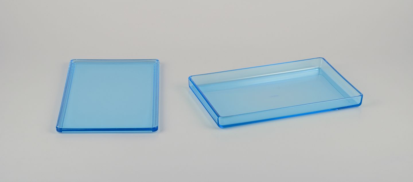 Rauff & Møldrup for Holmegaard. To store Thurø opbevaringsbokse af turkisblåt kunstglas. Vinder af RED DOT Designpris 2008 for Thurø Line.
