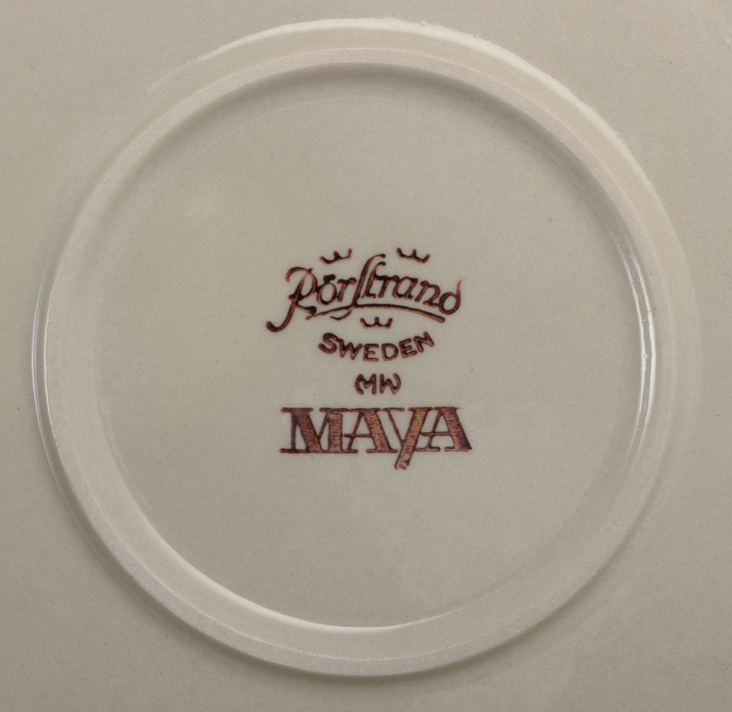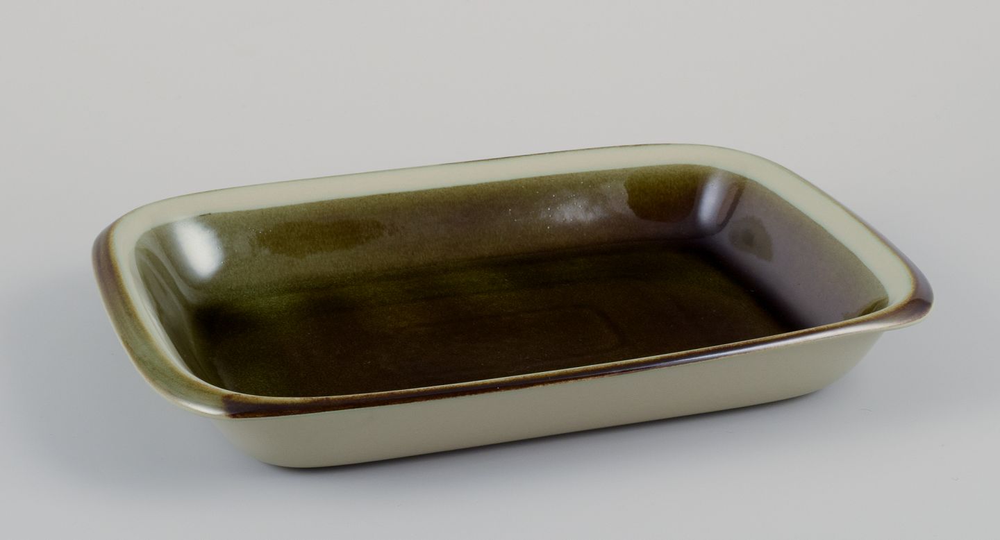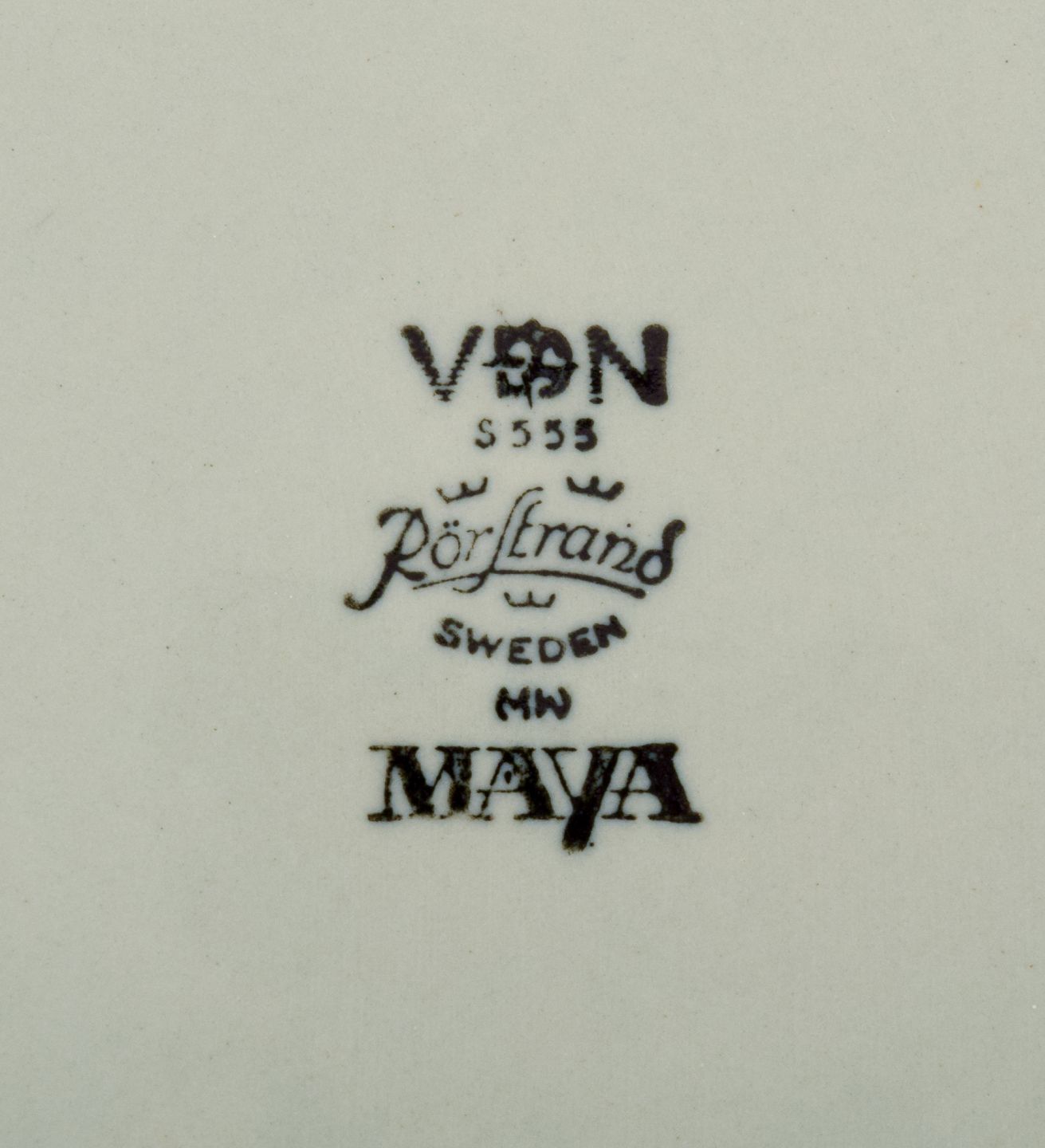 Marianne Westman (1928-2017) for Rörstrand, Sverige. Fire dele ”Maya” stentřj. Tekande, to dybe tallerkner samt et stort fad i sten.