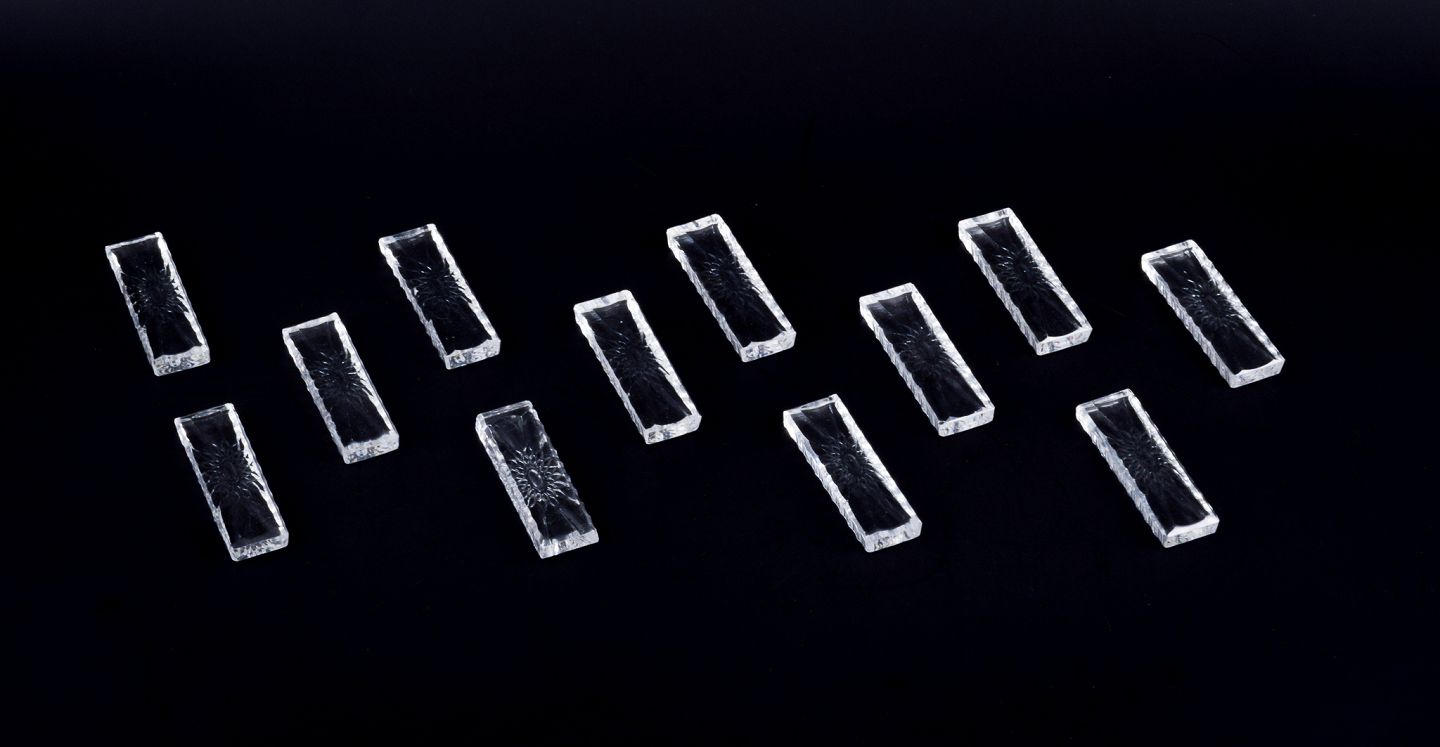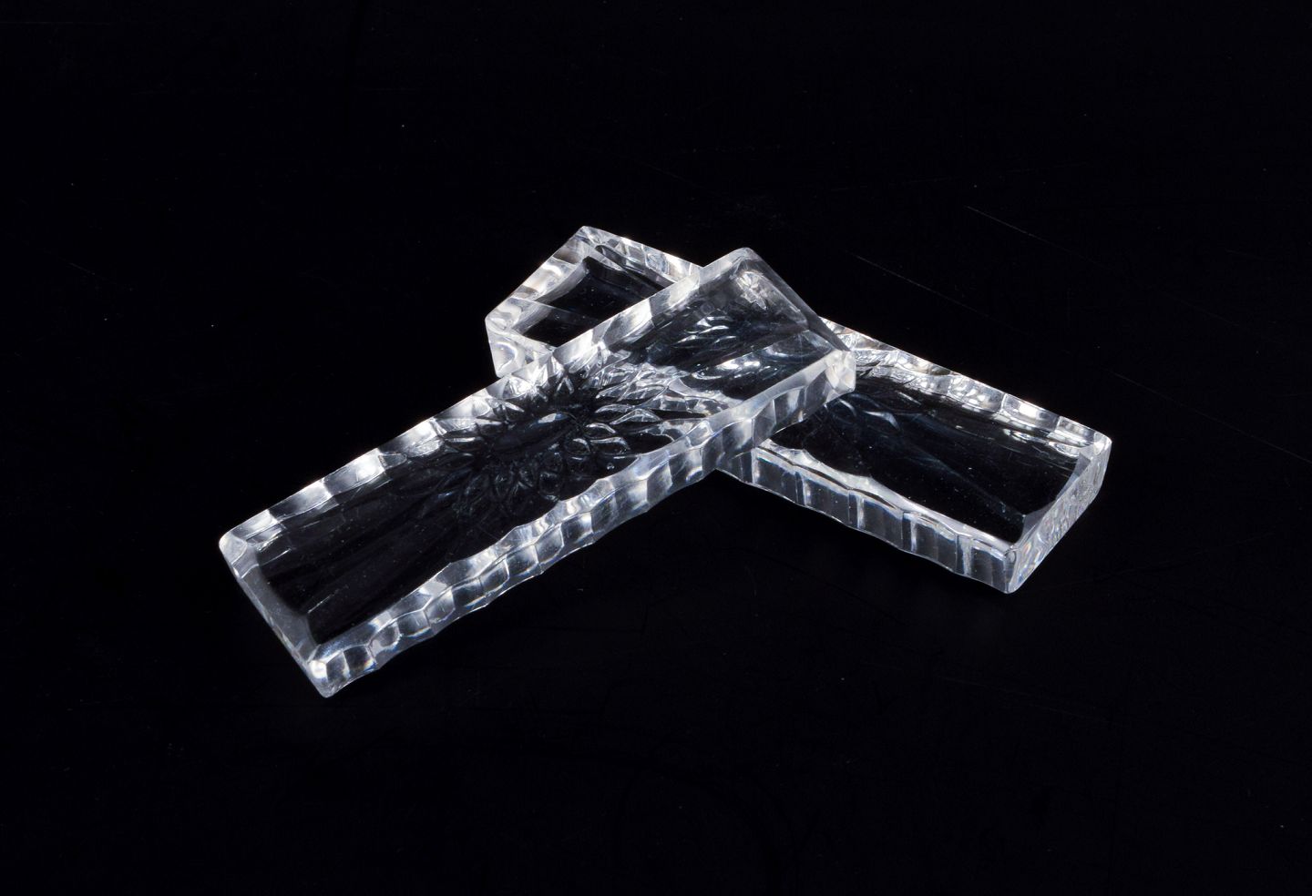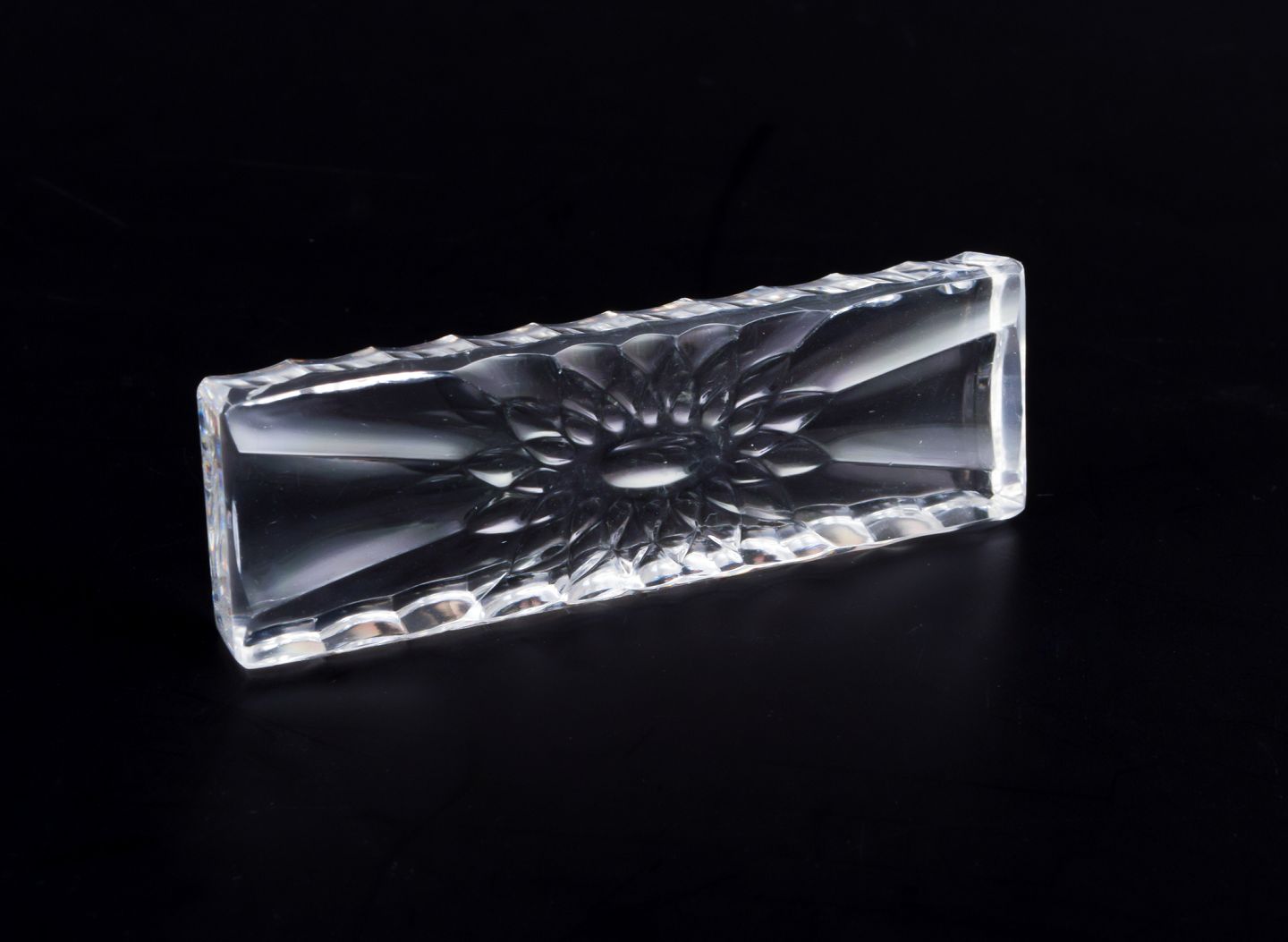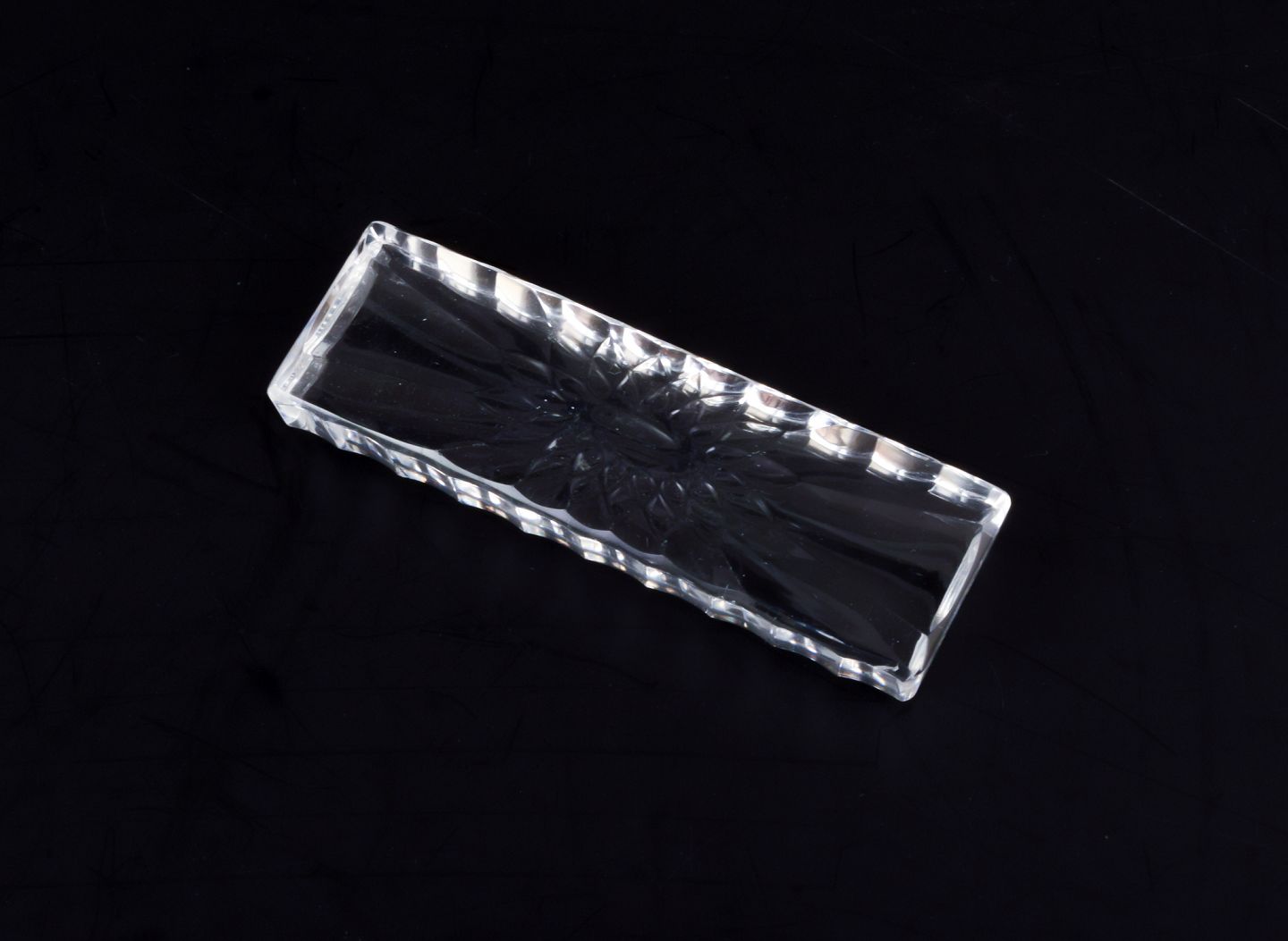 Baccarat, Frankrig. Et sæt på tolv knivstole i klart kunstglas. Motiv af blomst. Facetslebet. Håndlavet.