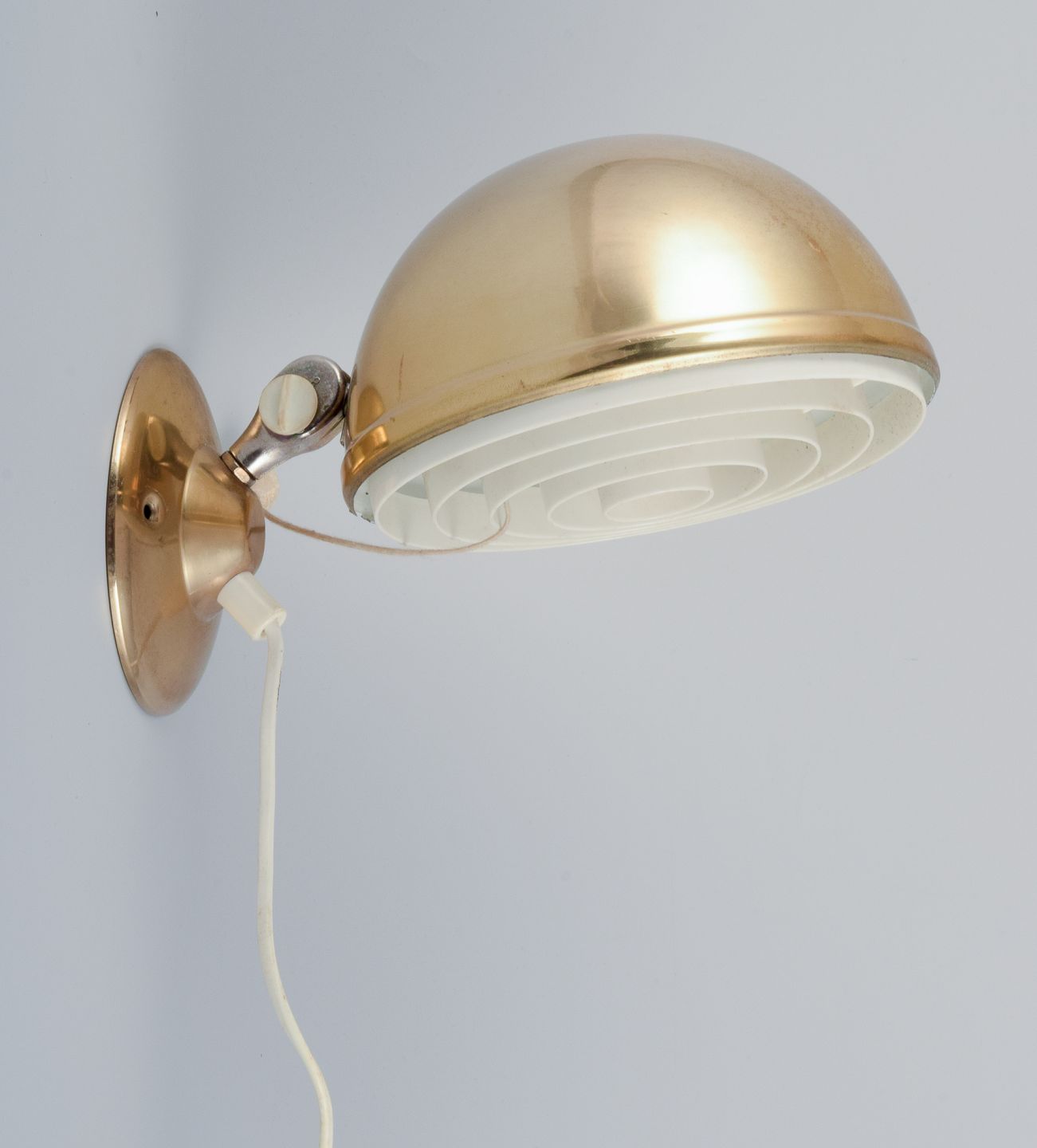 Knud Chistensen for ”Elit”, Danmark. Et par modernistiske væglamper i messing med plastskærm. Trækafbryder. Stilrent skandinavisk design. 1970’erne. Perfekt stand. Mål: D 18,0 cm. x H 10,0 cm.