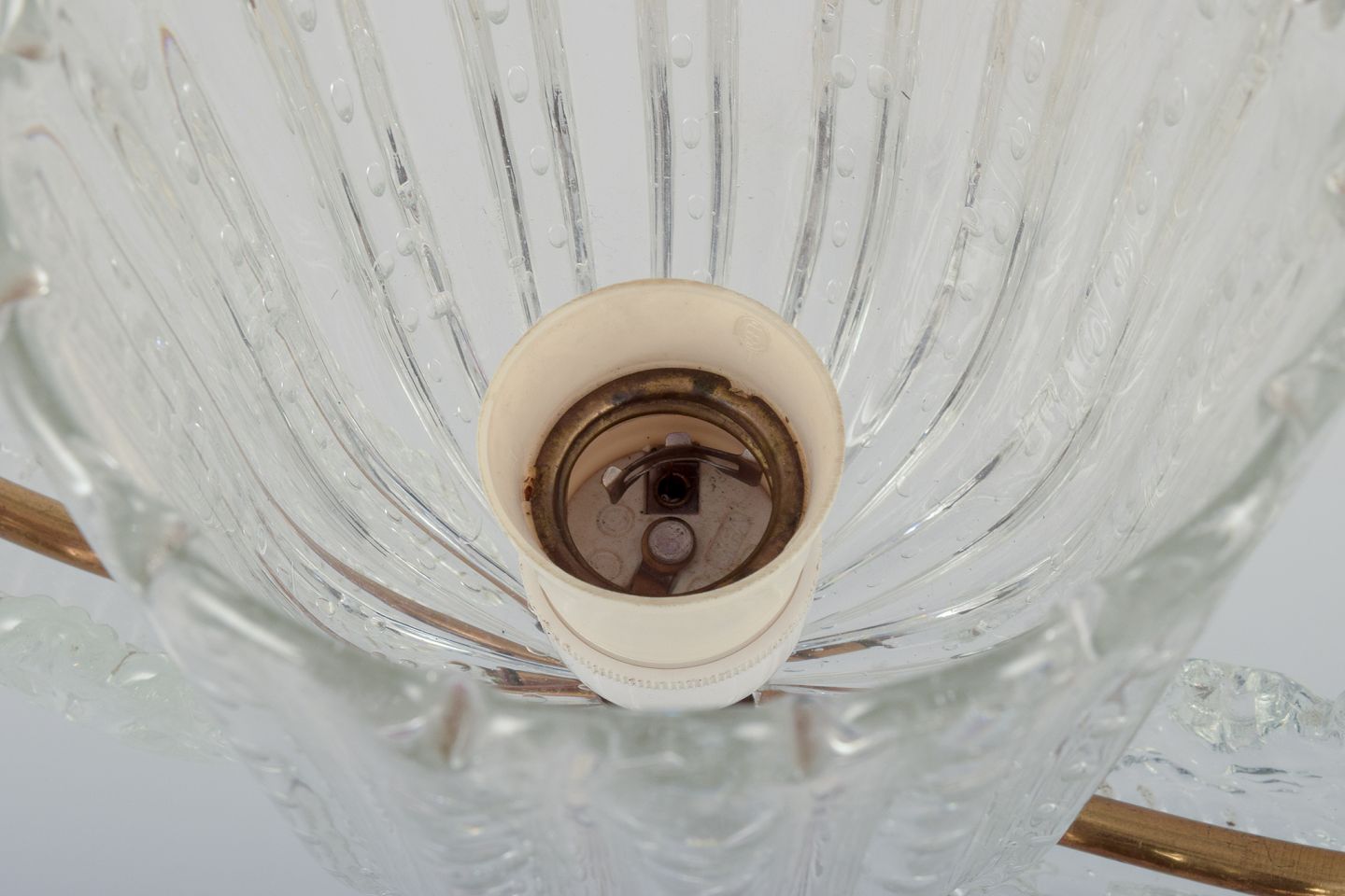 Murano, Italien. Loftslampe i klart matteret kunstglas og messing. Art Deco-stil. Midt 1900-tallet. Perfekt stand. Mål: H 55,0 cm. x B 34,0 cm.