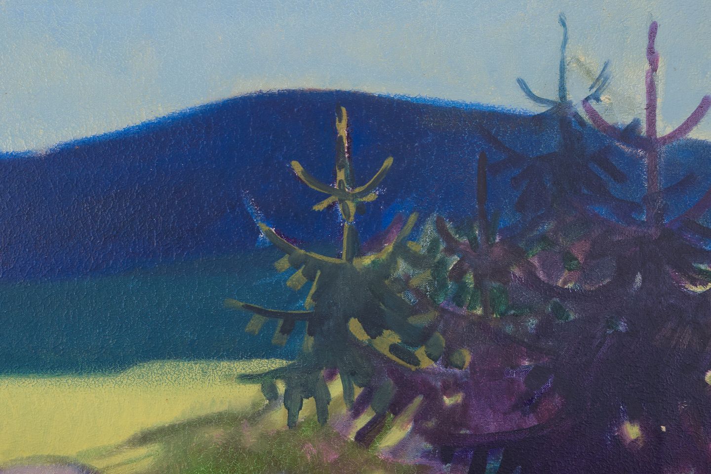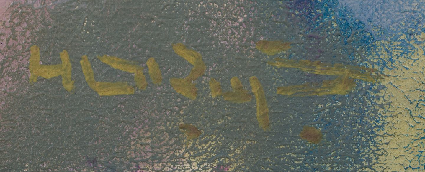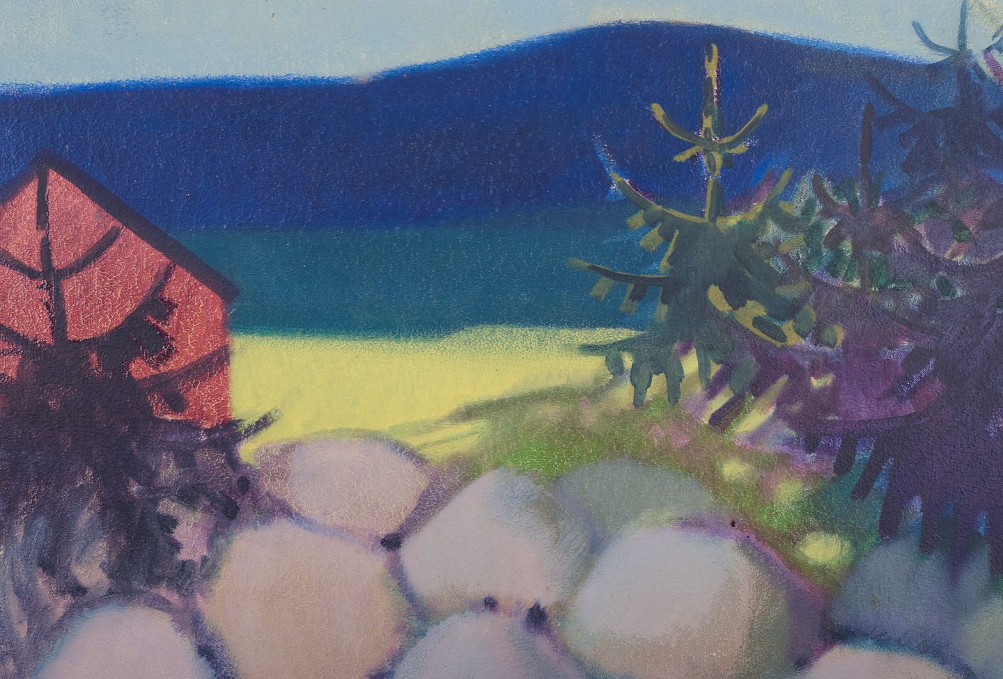 Knud Horup (1926-1973), dansk kunstner, olie på lærred. Hus i landskab. Midt 1900-tallet. Signeret. I perfekt stand. Mål: 70 cm. x 60 cm. Total: 87 cm. x 77 cm.