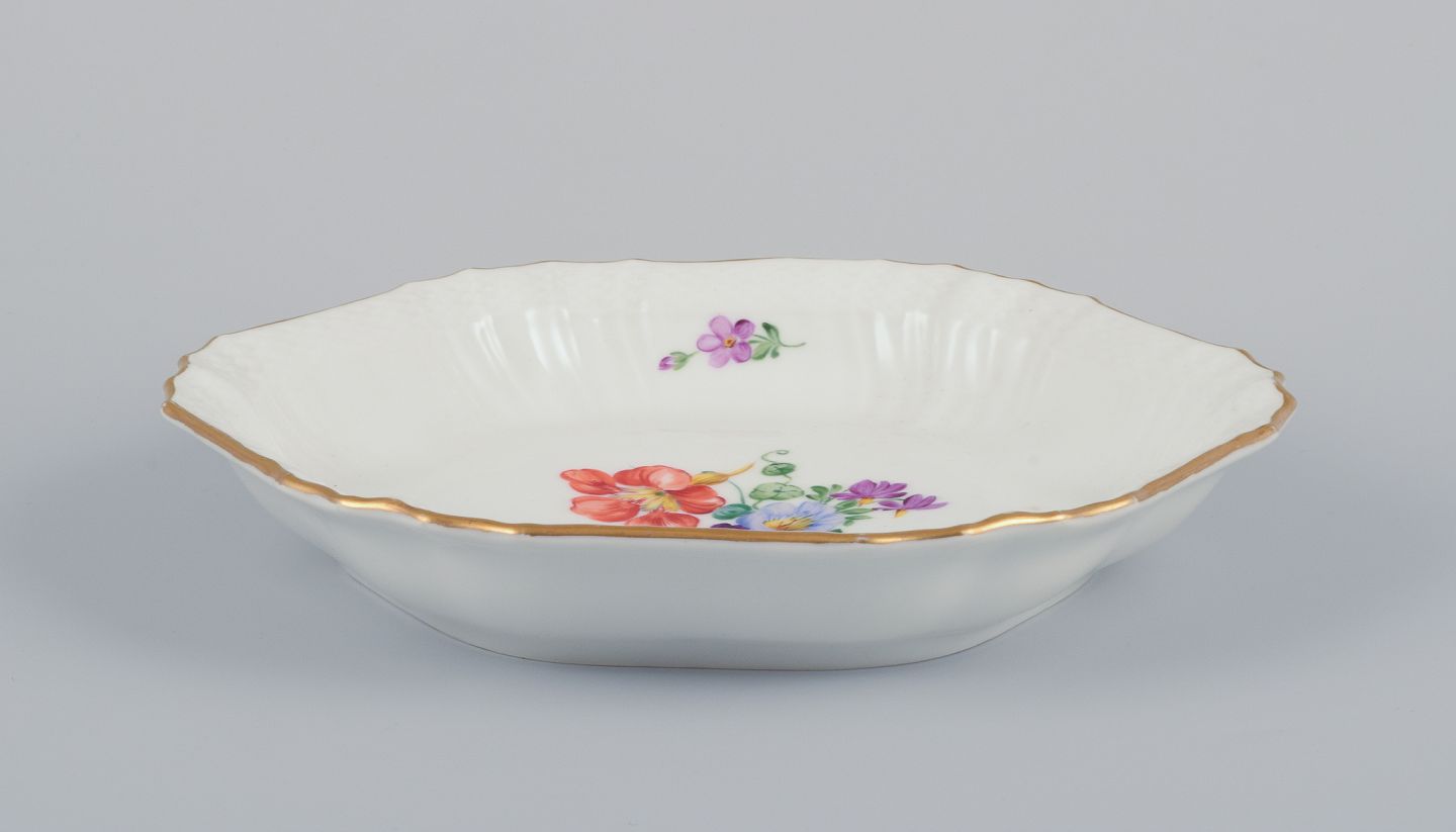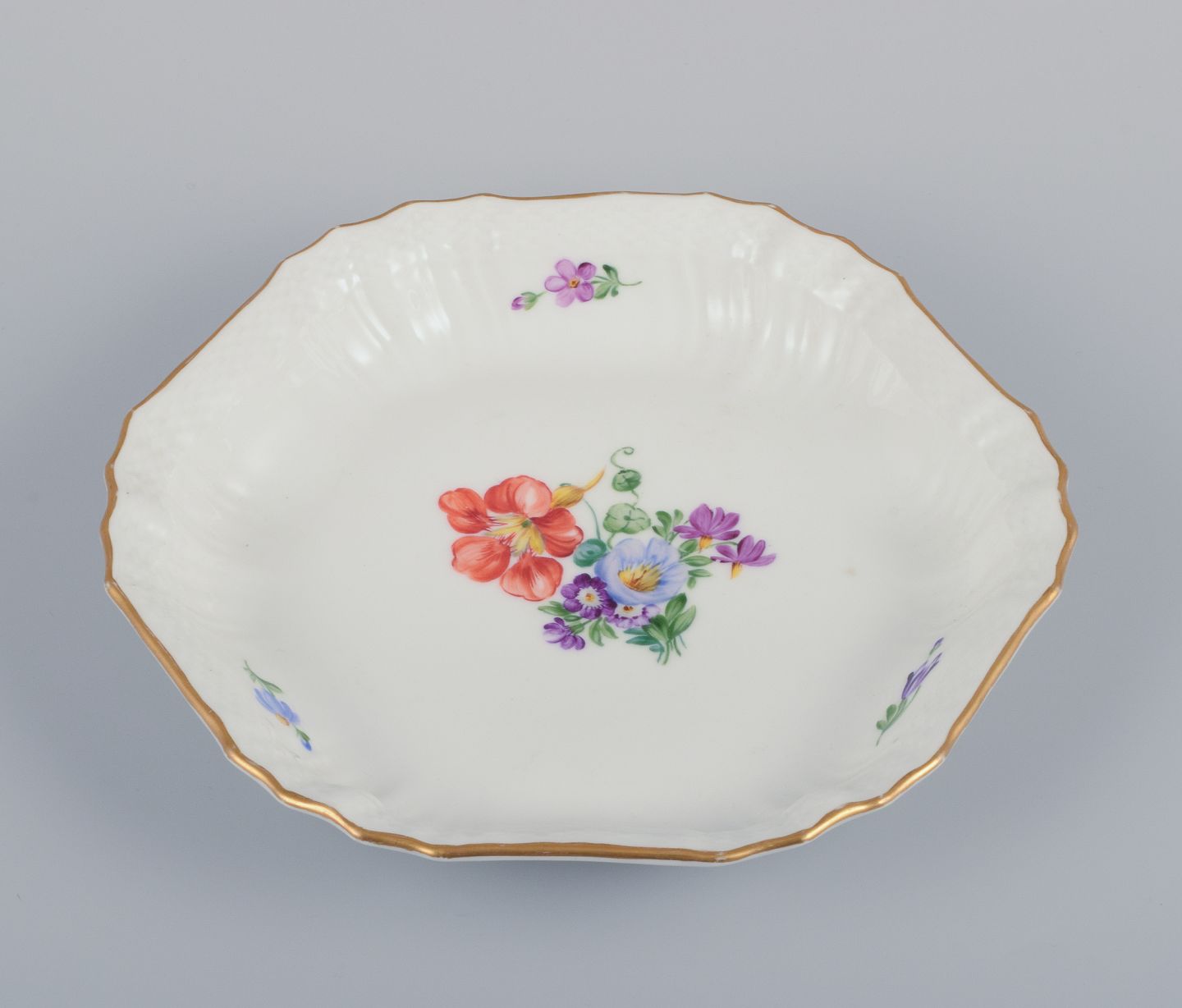 Royal Copenhagen Saksisk Blomst. Skål i porcelæn. Håndmalet med polykrome blomster. Guldkant.