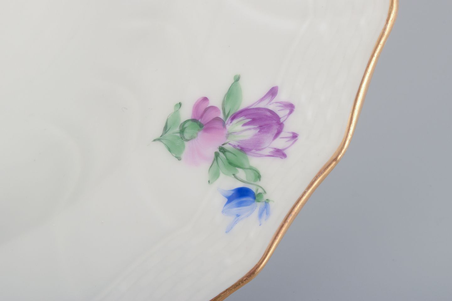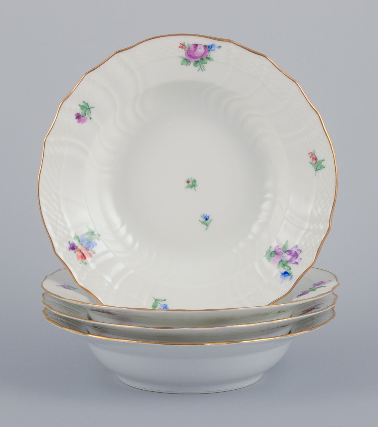 Royal Copenhagen Saksisk Blomst. Fire dybe tallerkner i porcelæn. Håndmalet med polykrome blomster. Guldkant. Ekstra dyb model.