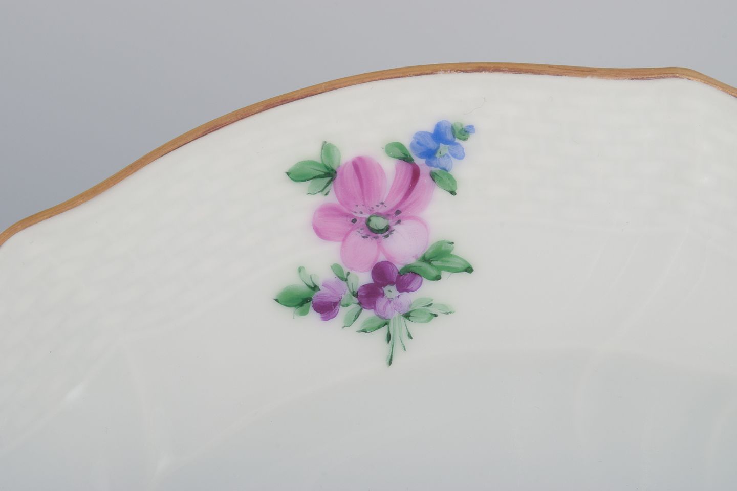 Royal Copenhagen Saksisk Blomst. Seks middagstallerkner i porcelæn. Håndmalet med polykrome blomster. Guldkant.