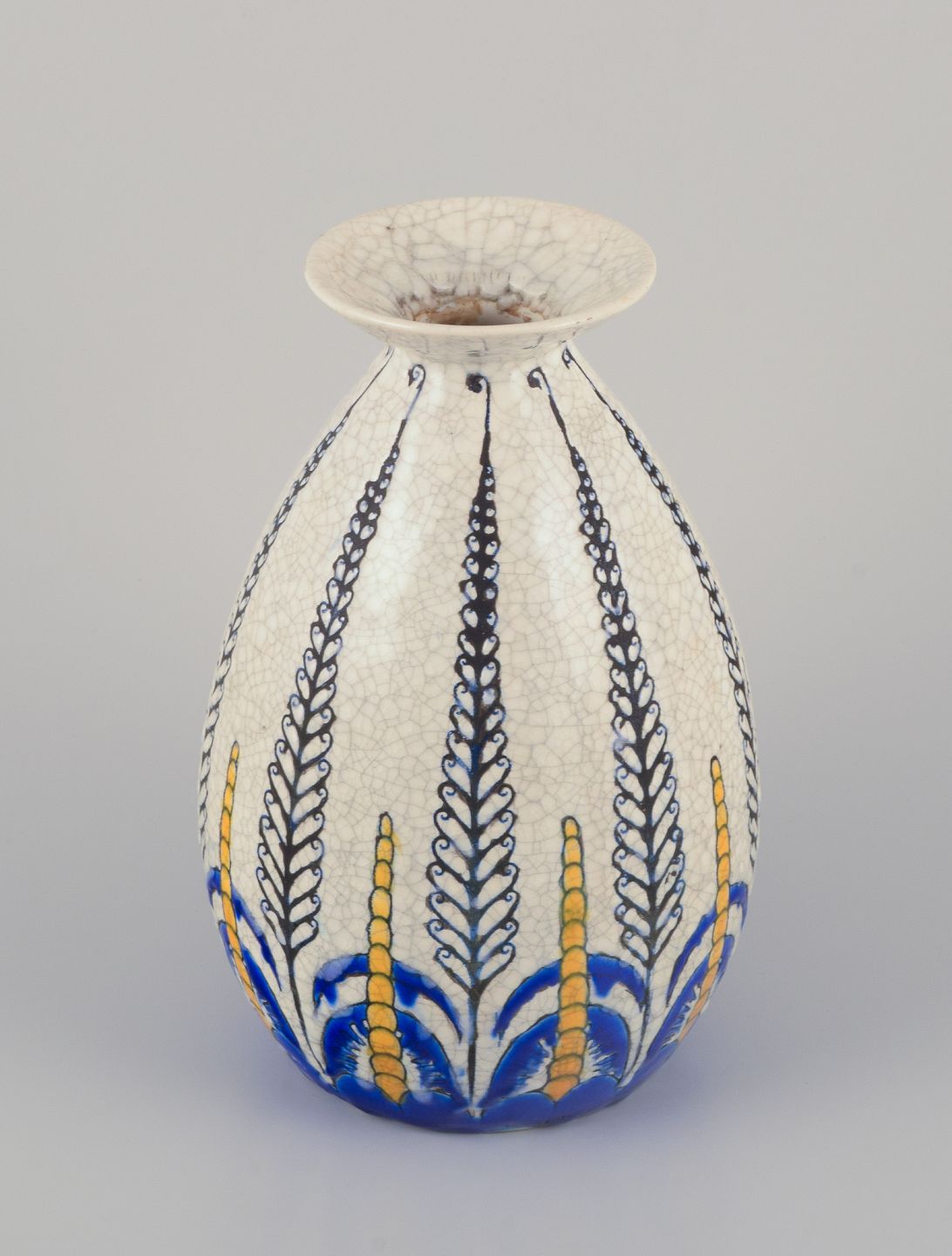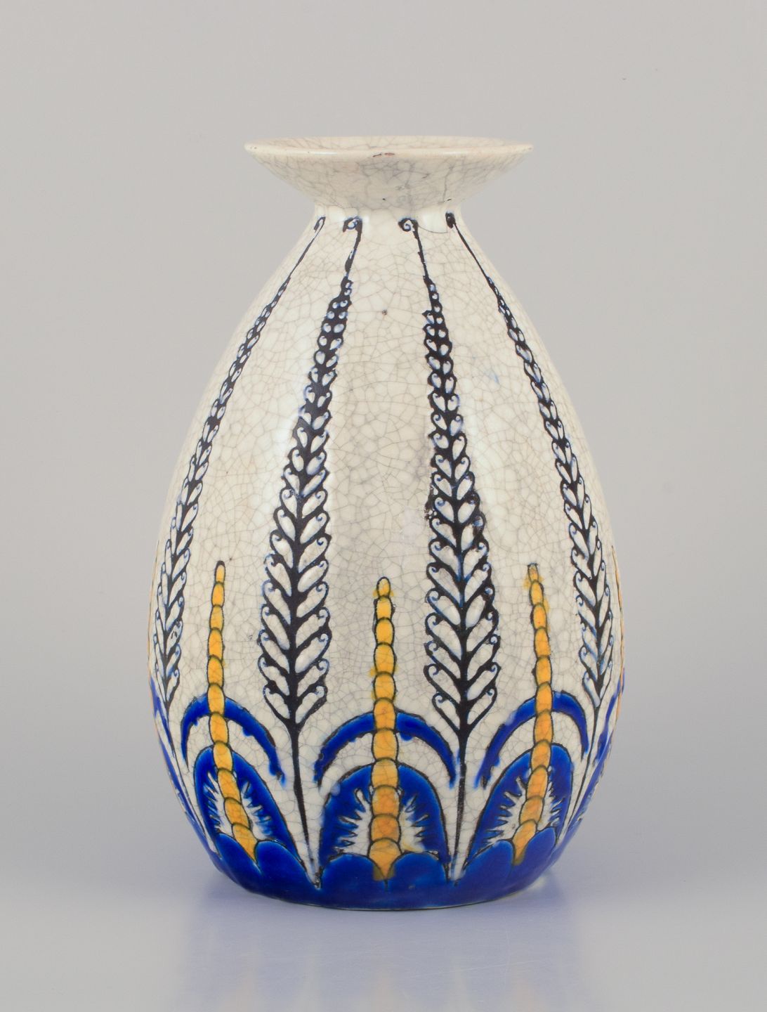 Charles Catteau (1880-1966) for Boch Freres Keramis, Belgien. Stor Art Deco keramikvase i cloisonné teknik. Håndmalet med blomster.