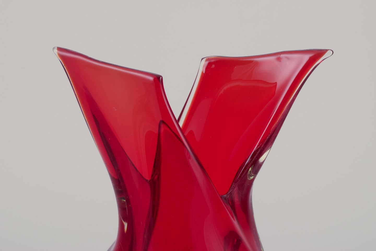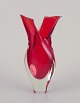 Murano, Italien. Kunstglasvase i klart og rødt glas. Abstrakt design. Ca. 1960’erne. Mærkat. Perfekt stand. Mål: H 20.9 cm. x B 10,5 cm.