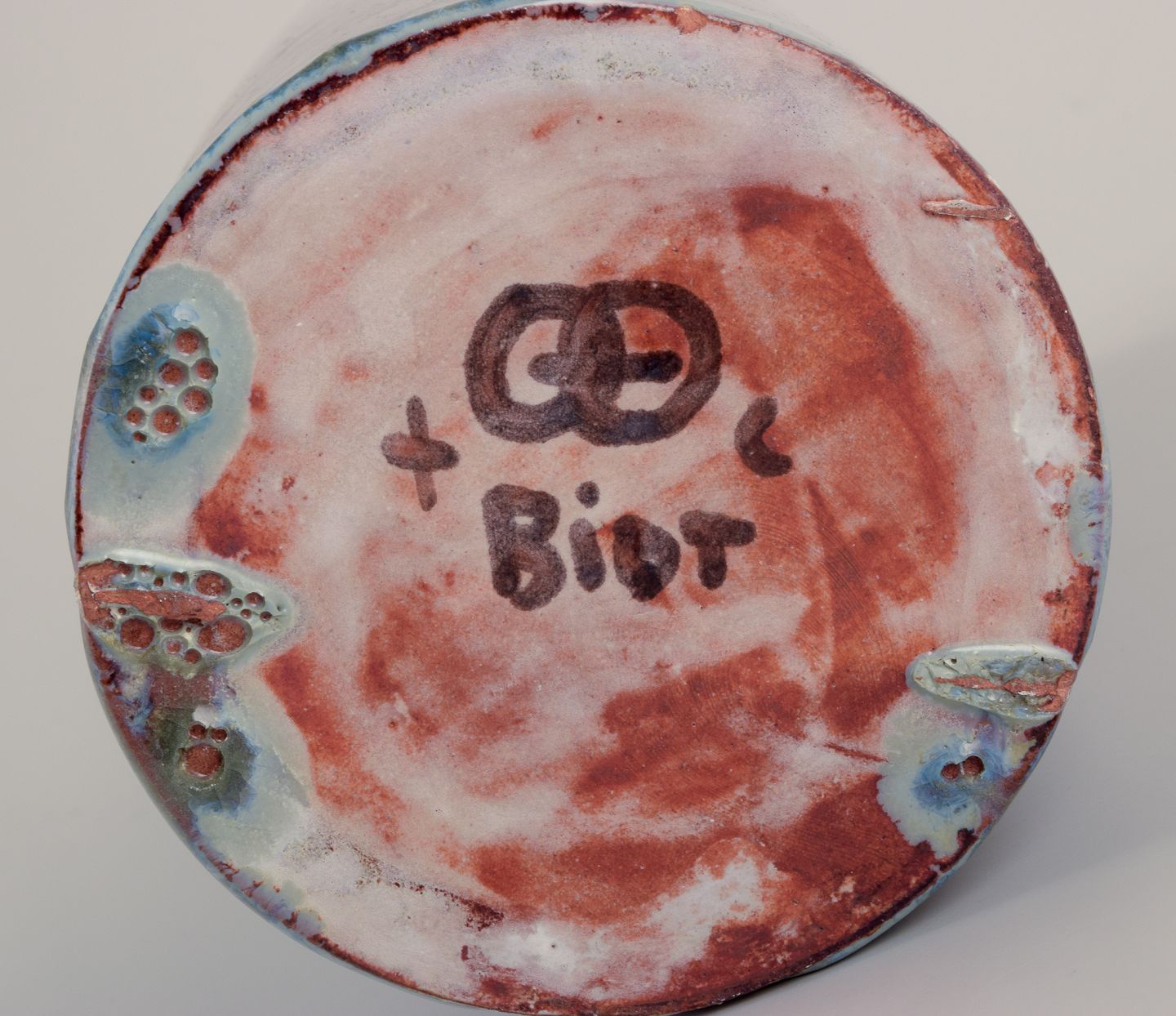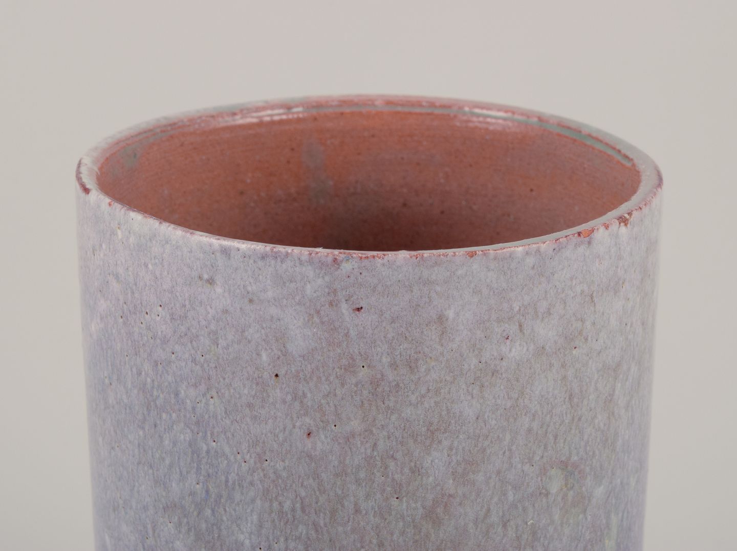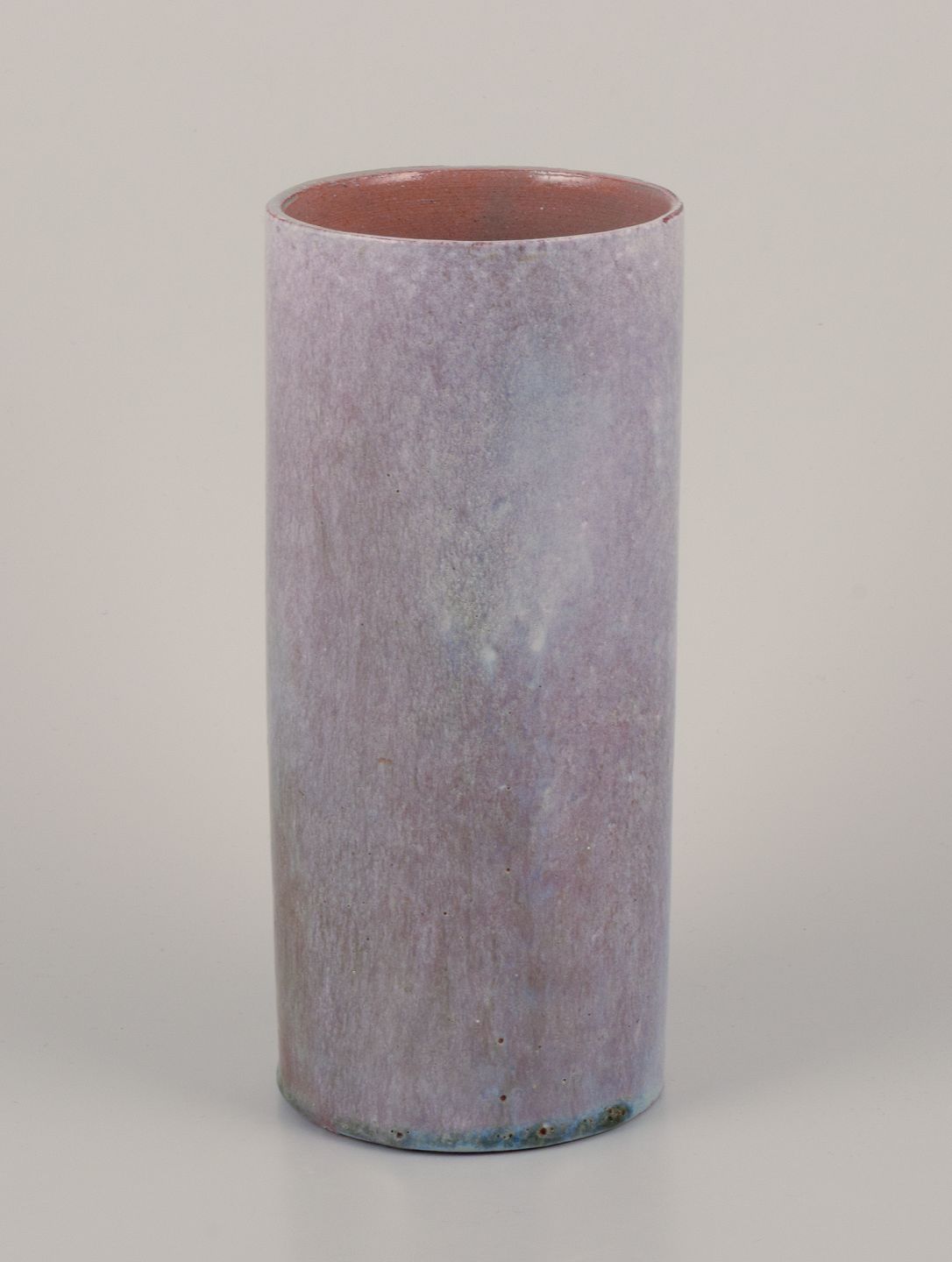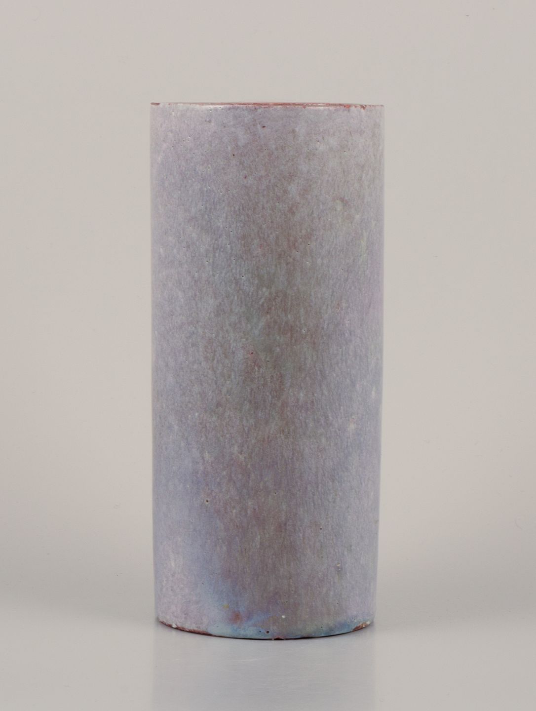 Biot, Frankrig. Unika keramikvase. Cylinderformet. Glasur i grågrønne toner. Ca. 1980’erne. Signeret i monogram. I flot stand. Mål: D 22,0 cm. x D 10,0 cm.