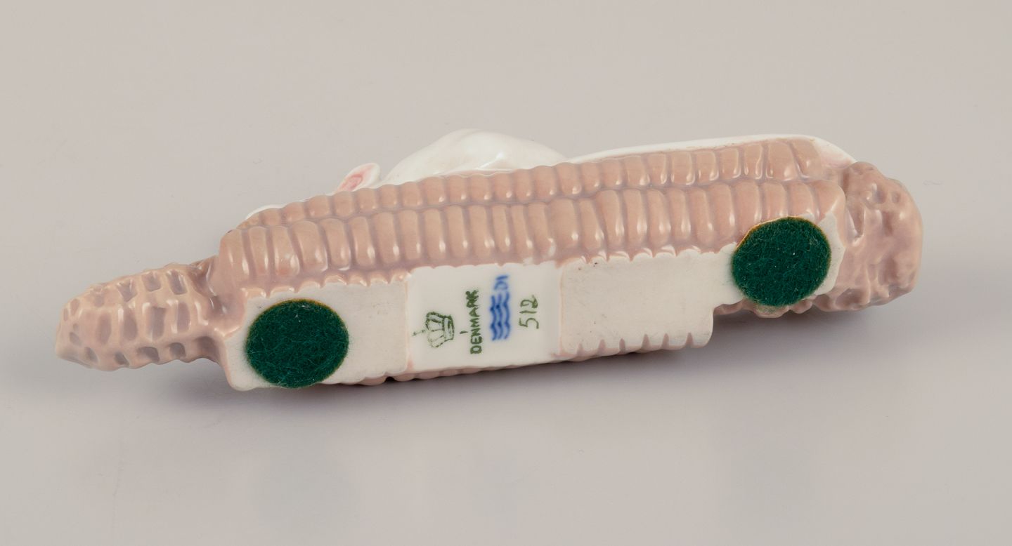 Royal Copenhagen, Danmark. Porcelænsfigur af mus på majskolbe. Modelnummer 512. Ca. 1910. I perfekt stand. Stemplet. Første sortering. Mål: L 13,0 x H 5,0 cm.