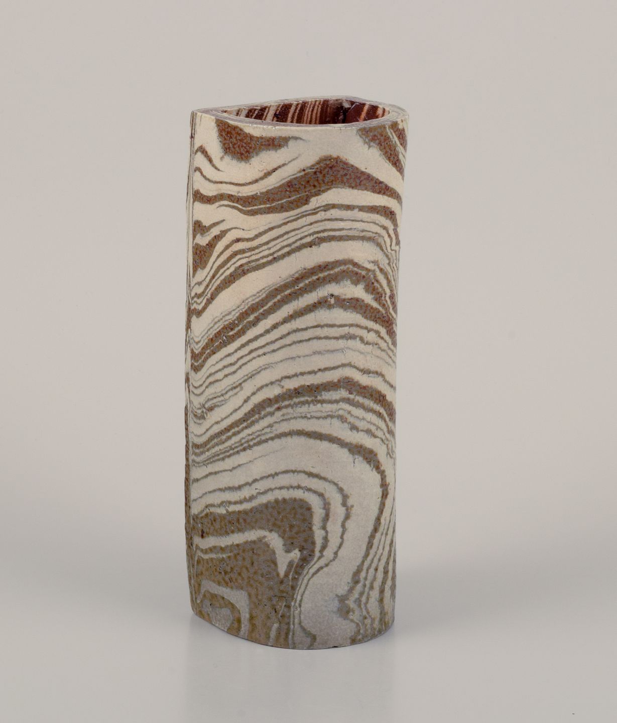 Et par unika keramikvaser. Glasur i blågrønne og sandfarvede nuancer. Glansfuld glasur.
