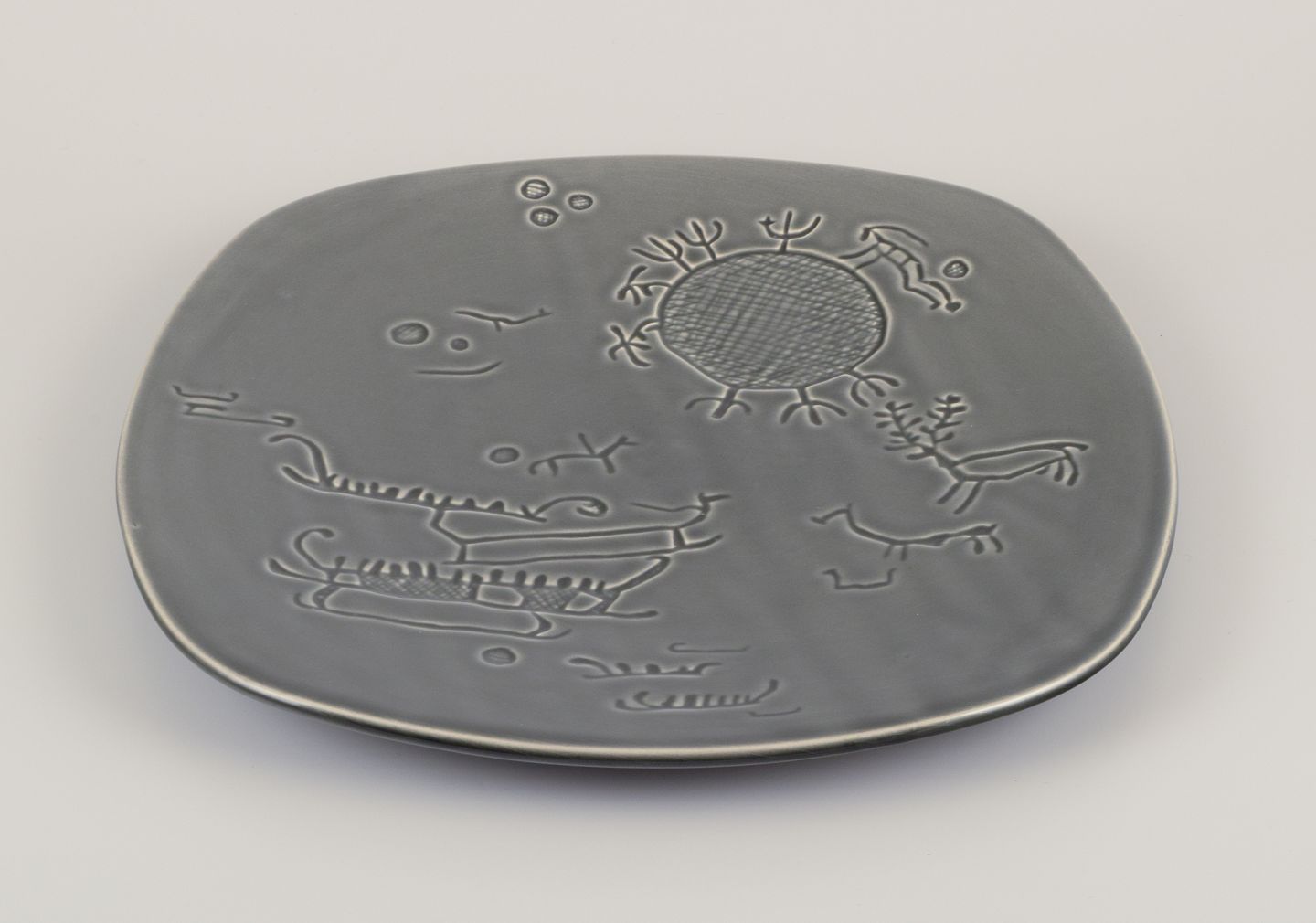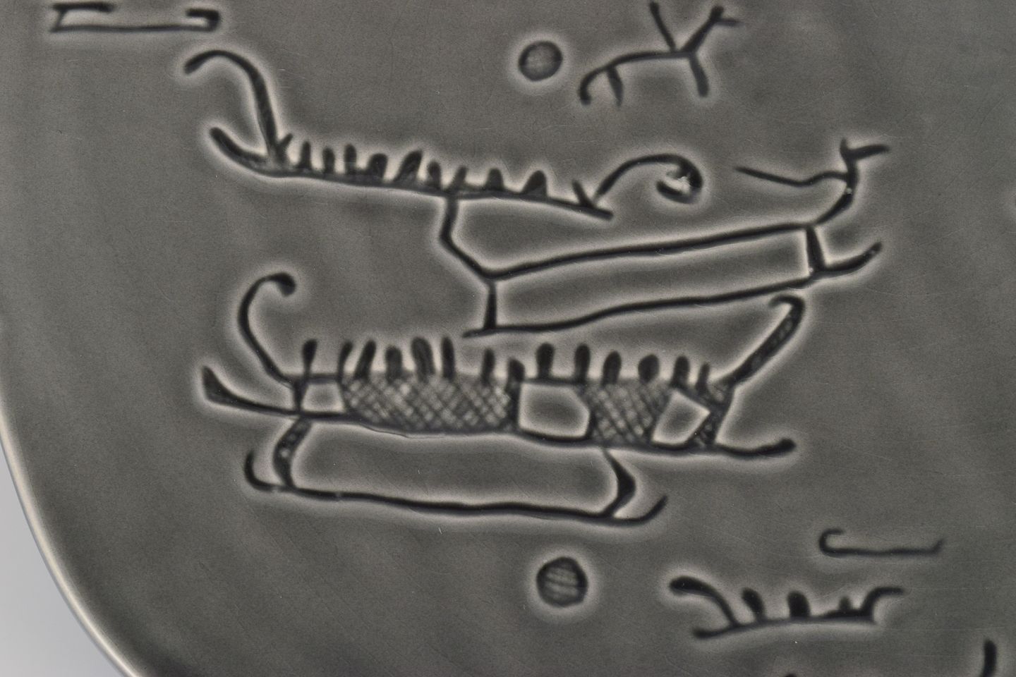 Stor vægplakette med motiv af helleristninger fra Tanum i Sverige.