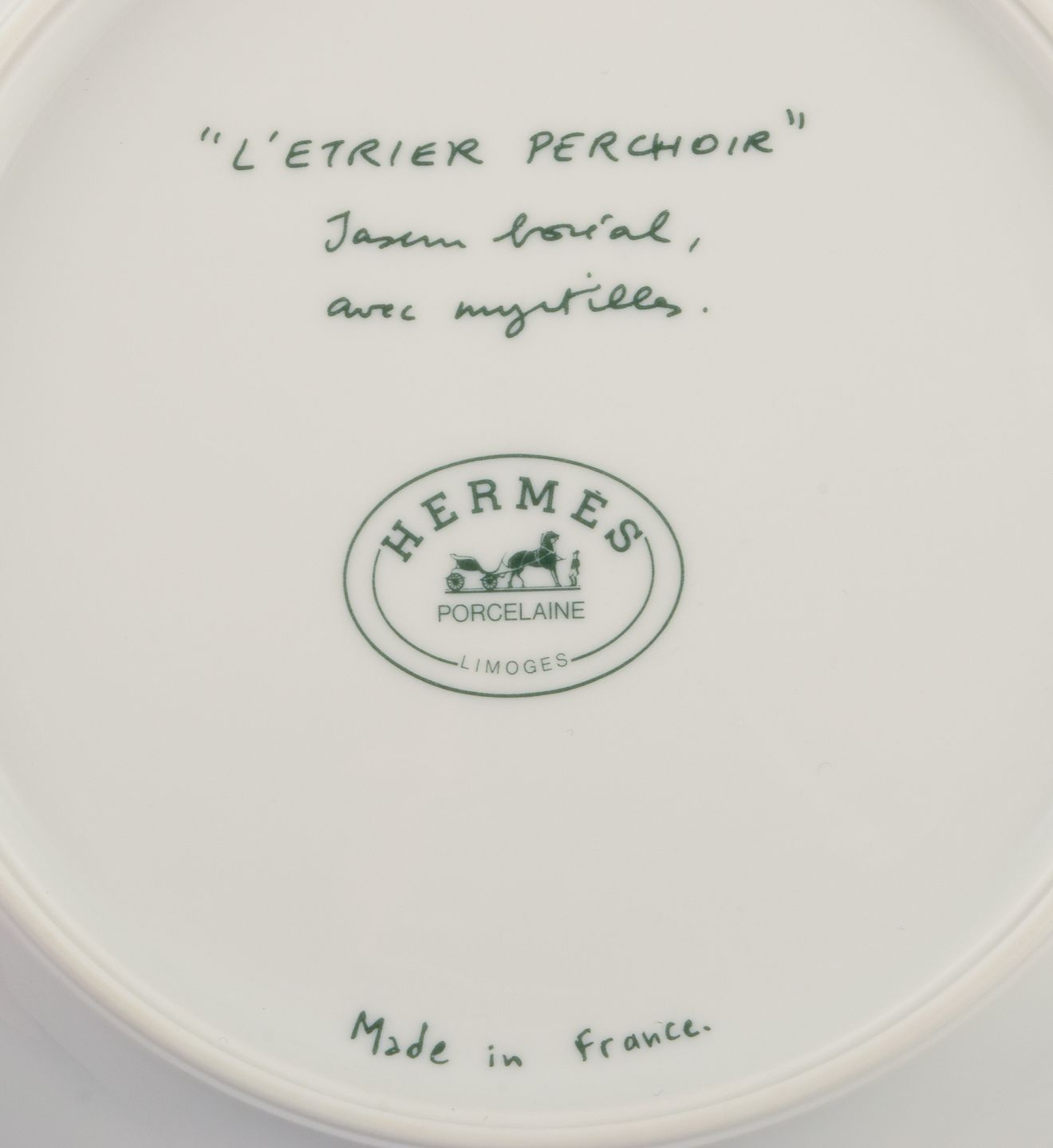 Hermès, Frankrig. To porcelænstallerkner med fuglemotiver. Fra ”L’etrier Perchoir” serien.