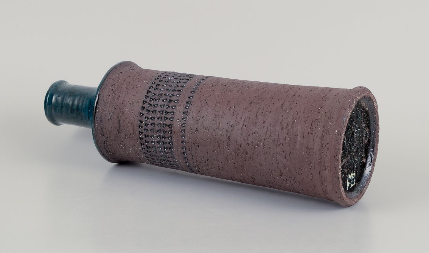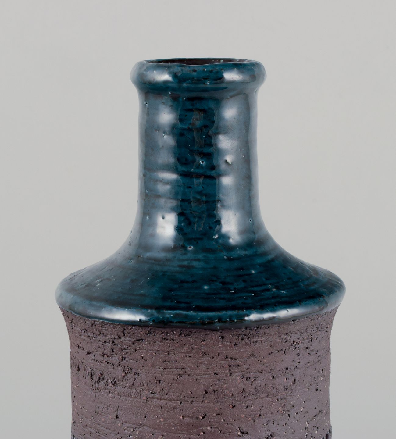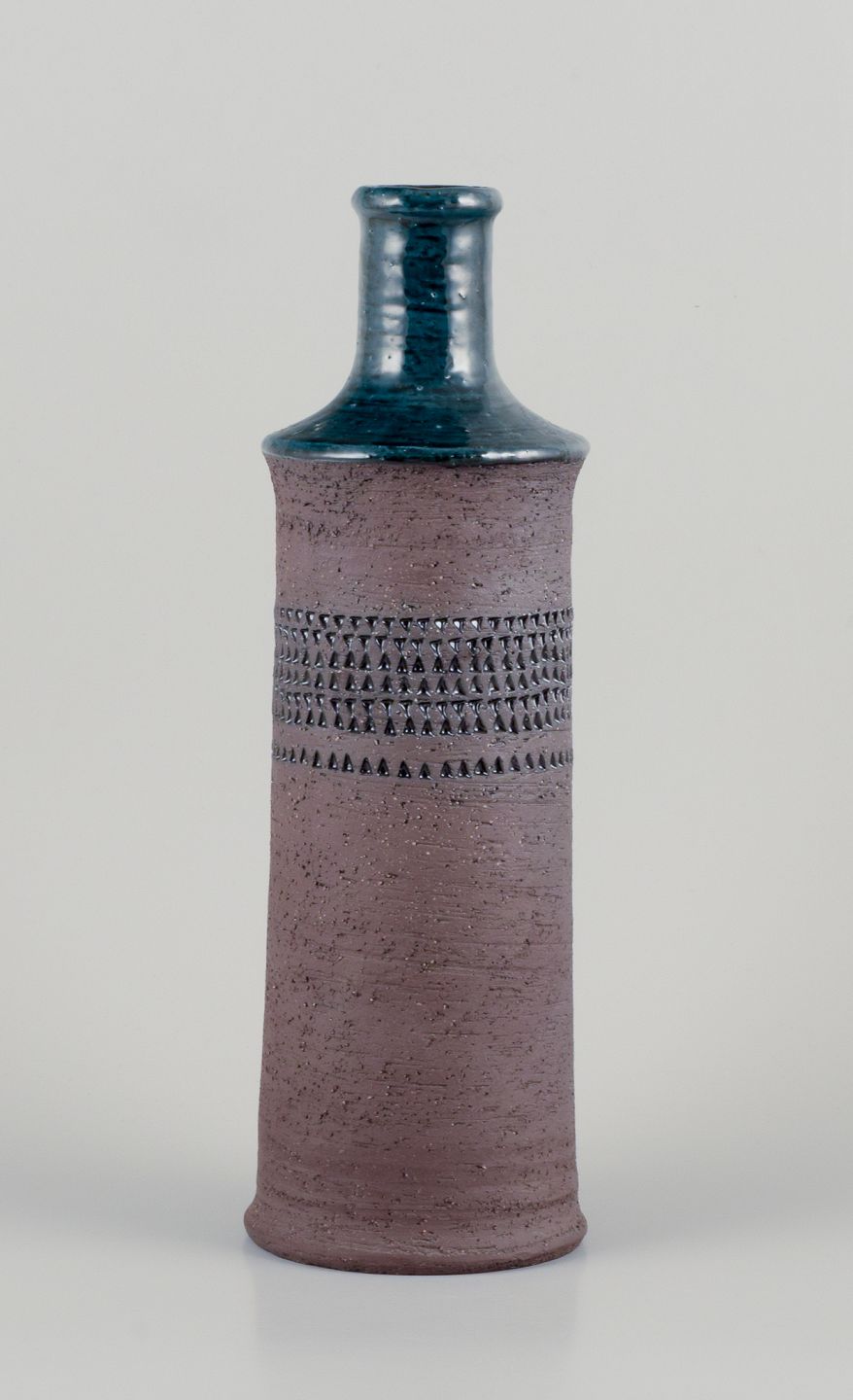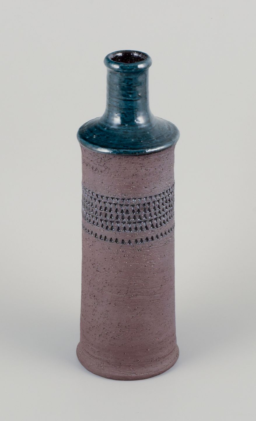 Inger Persson for Rörstrand Atelje, Sverige. Stor keramikvase i retro stil. Uglaseret og petroliumsblå glasur. 1960’erne. Stemplet. Perfekt stand. Mål: H 33,0 cm. x D 10,5 cm.