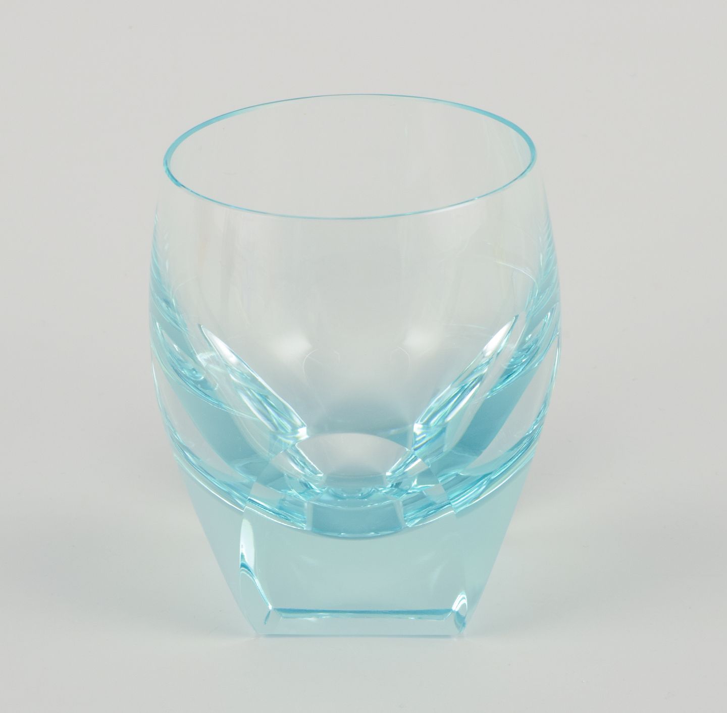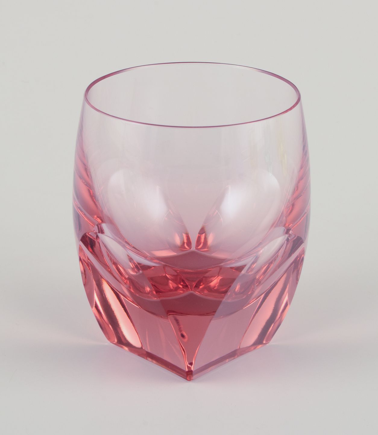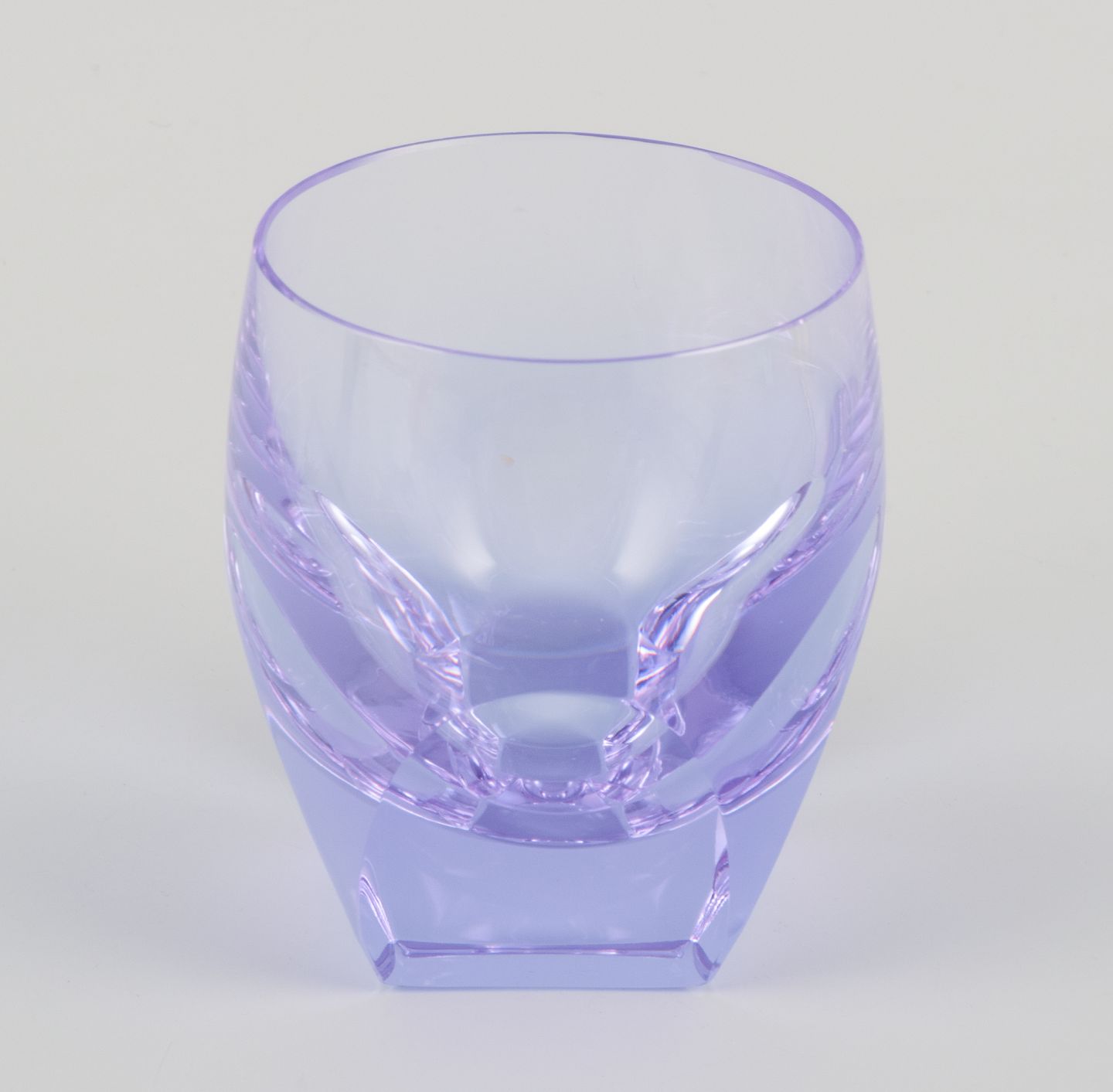 Moser, Karlsbad, Tjekkiet. Et sæt på fem farvede vandglas i forskellige farver. Facetslebet kunstglas. Ca. 1940’erne. Perfekt stand. Delvist stemplet. Mål: D 6,0 cm. x H 7,0 cm.