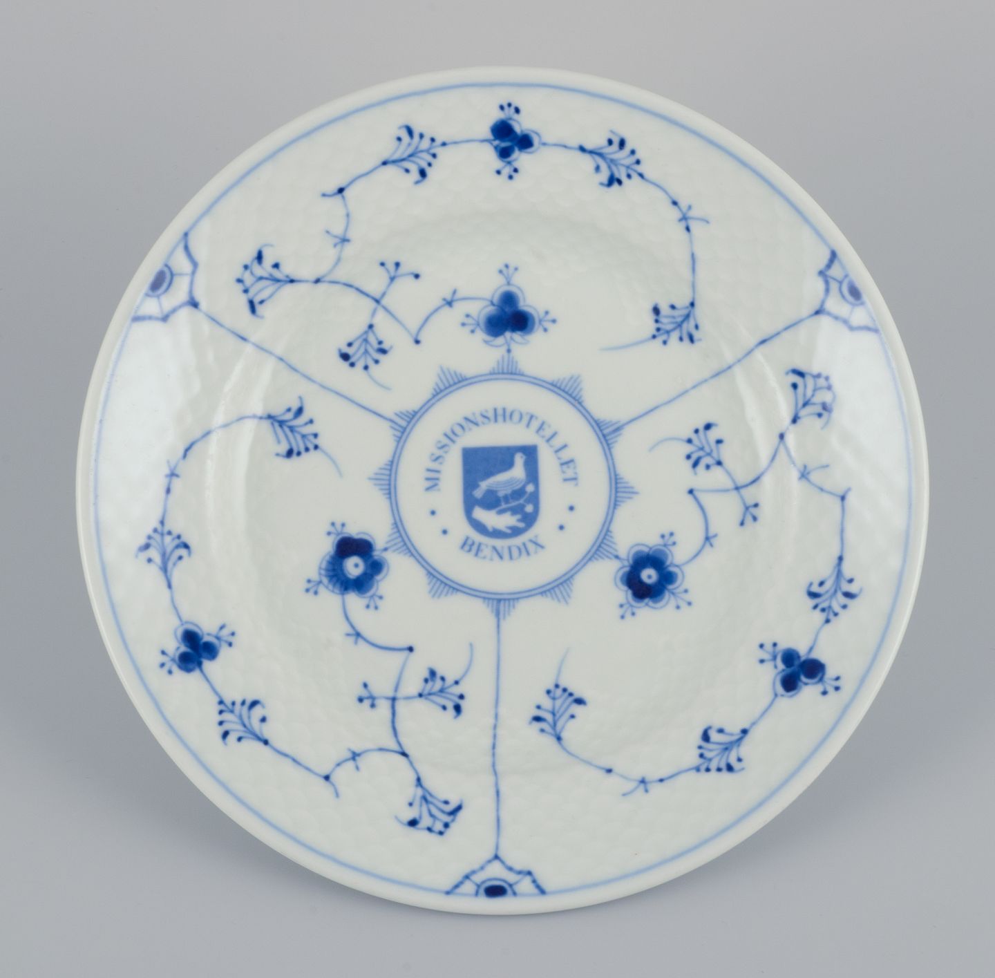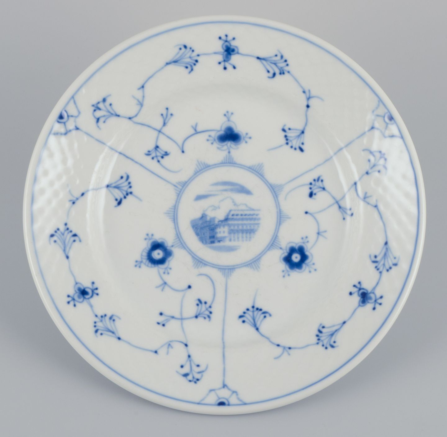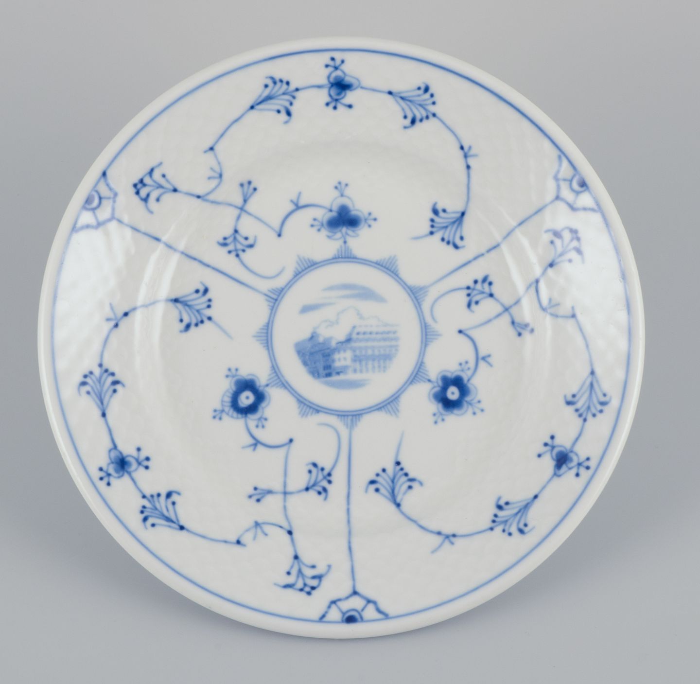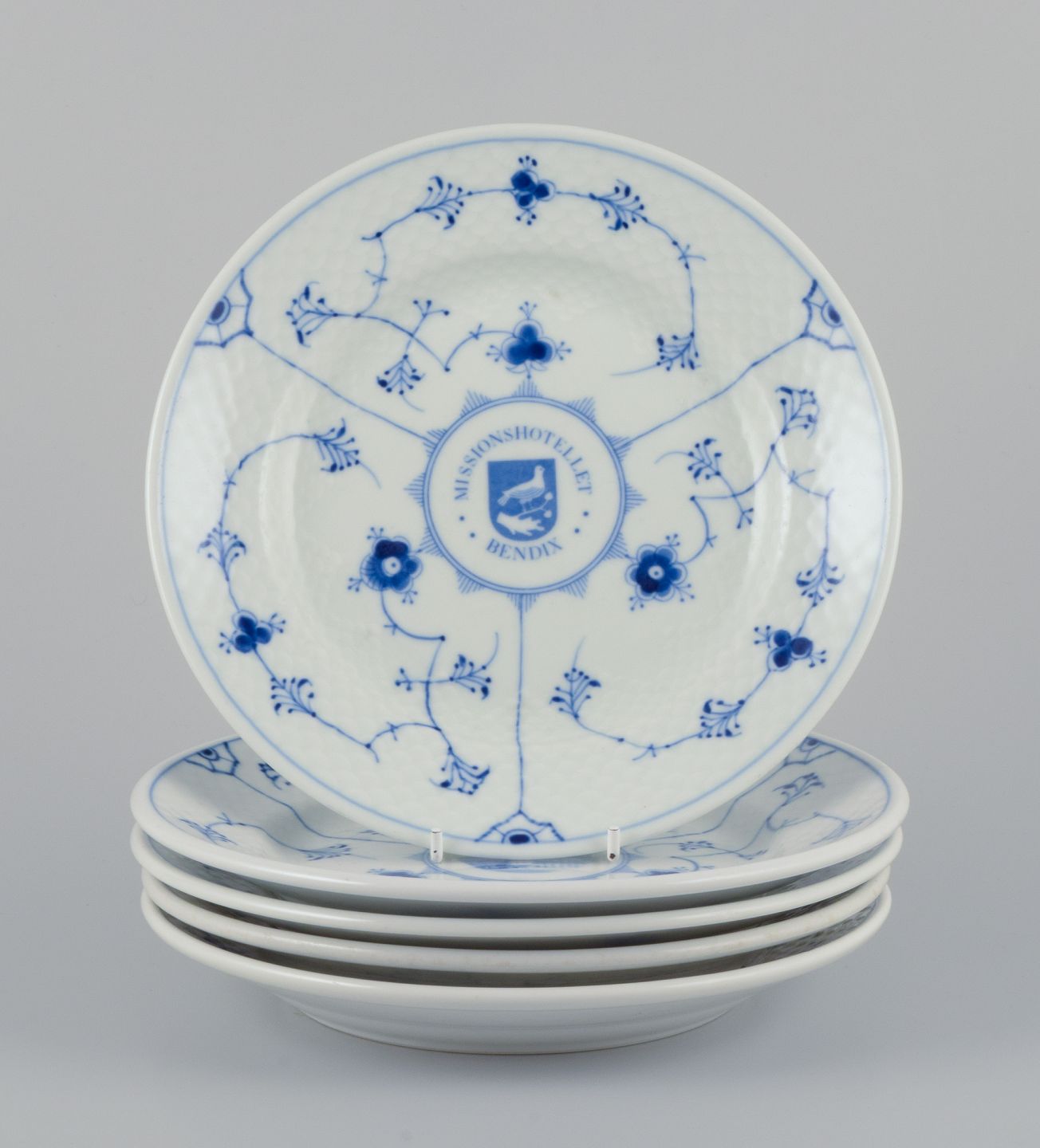 Et sæt på fem små Musselmalet frokosttallerkner i hotel/restaurantporcelæn.