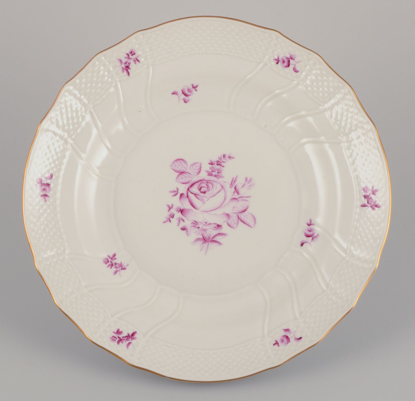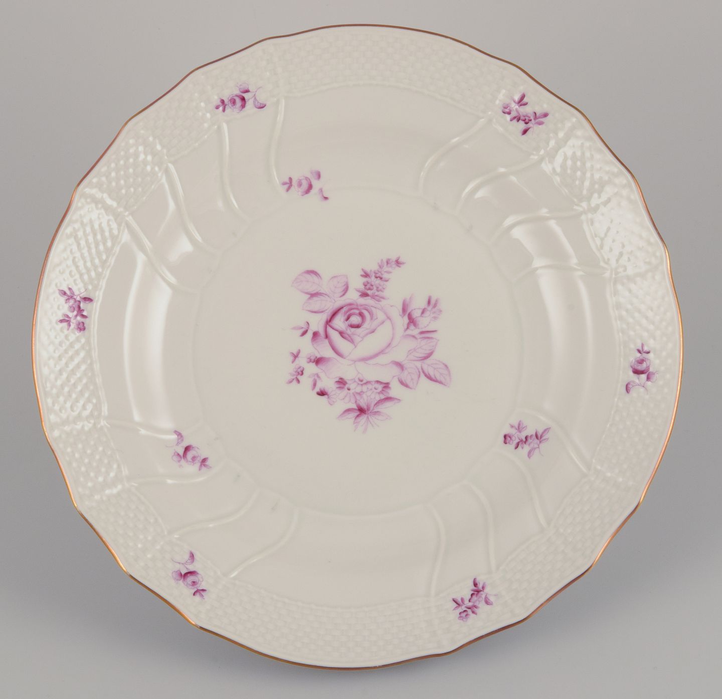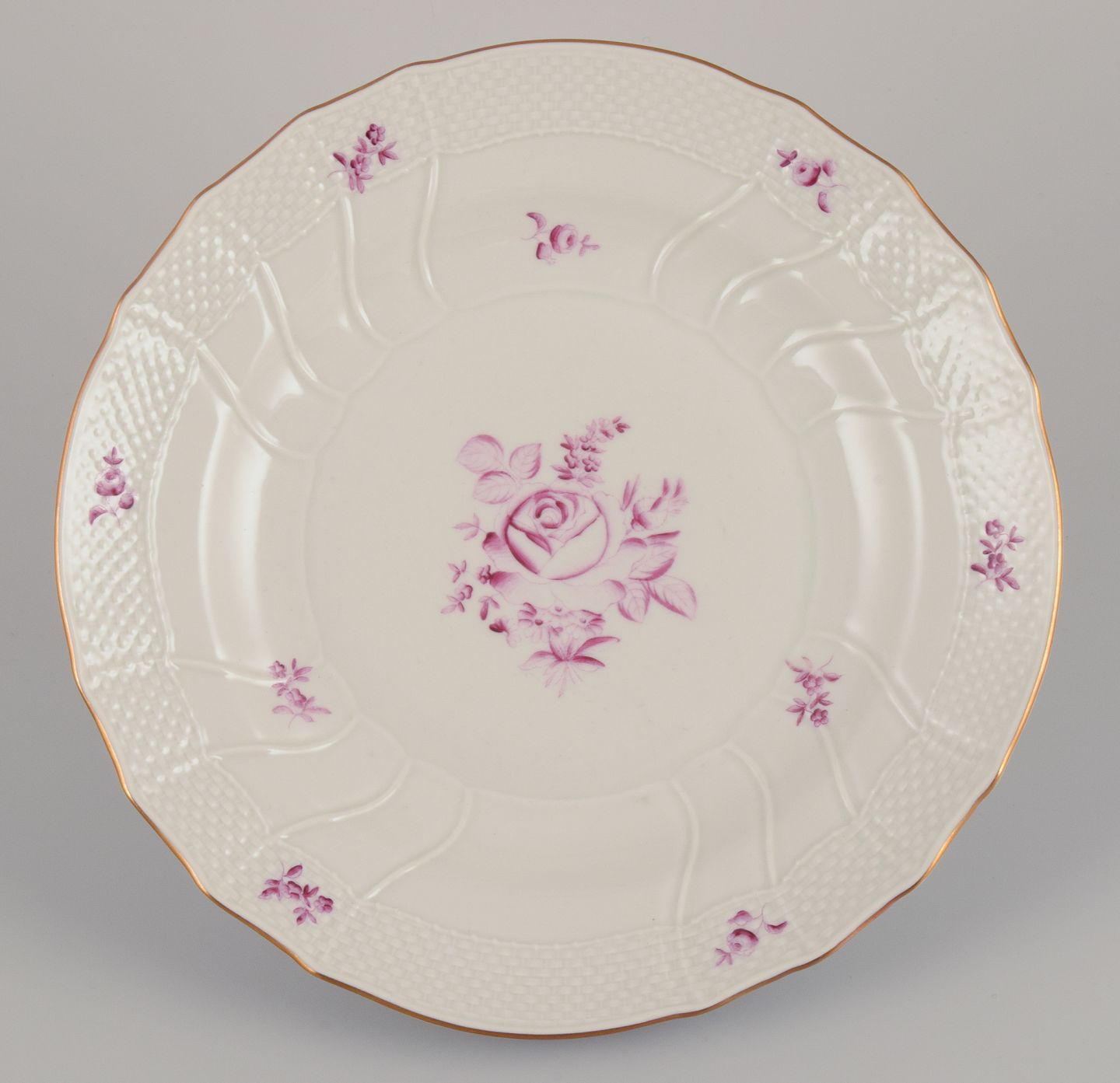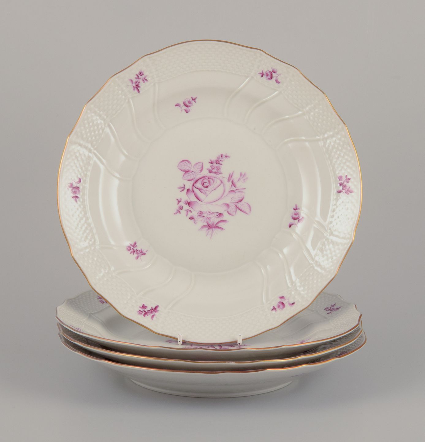 Herend, Ungarn. Et sæt på fire middagstallerkner. Håndmalet med lilla blomstermotiver. Guldkant. Midt 1900-tallet. Stemplet. Perfekt stand. Mål: D 25,5 cm. x H 3,5 cm.