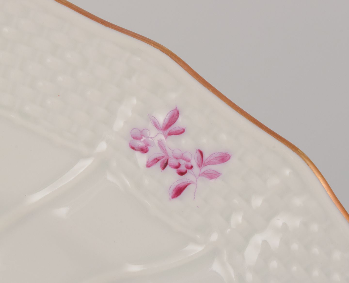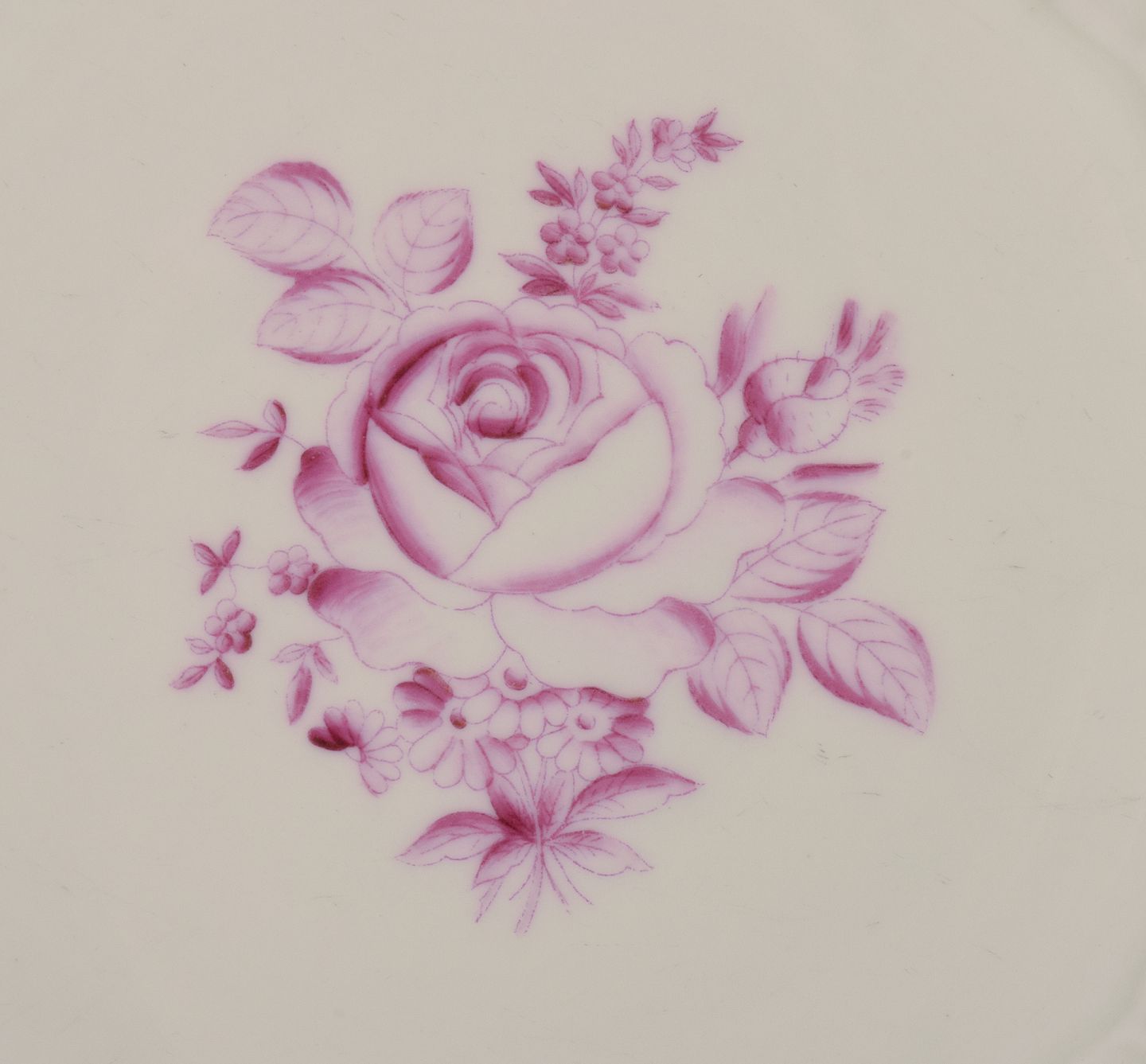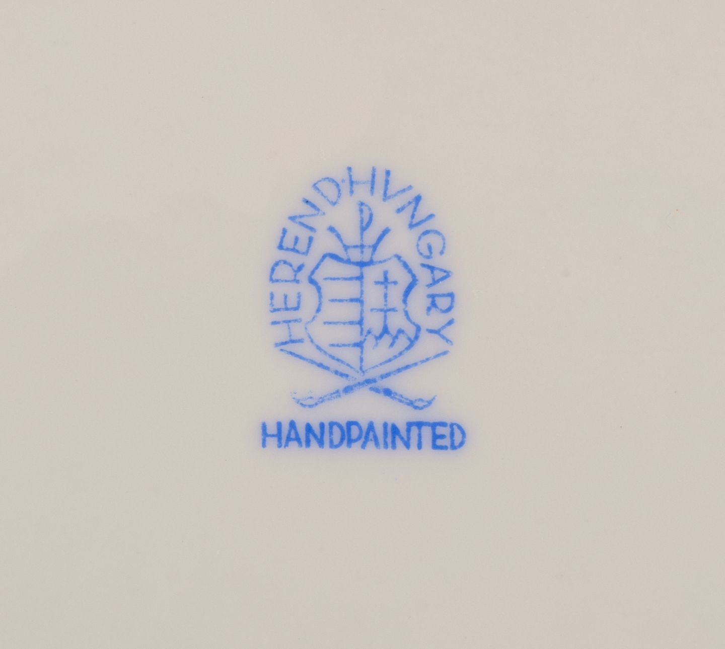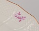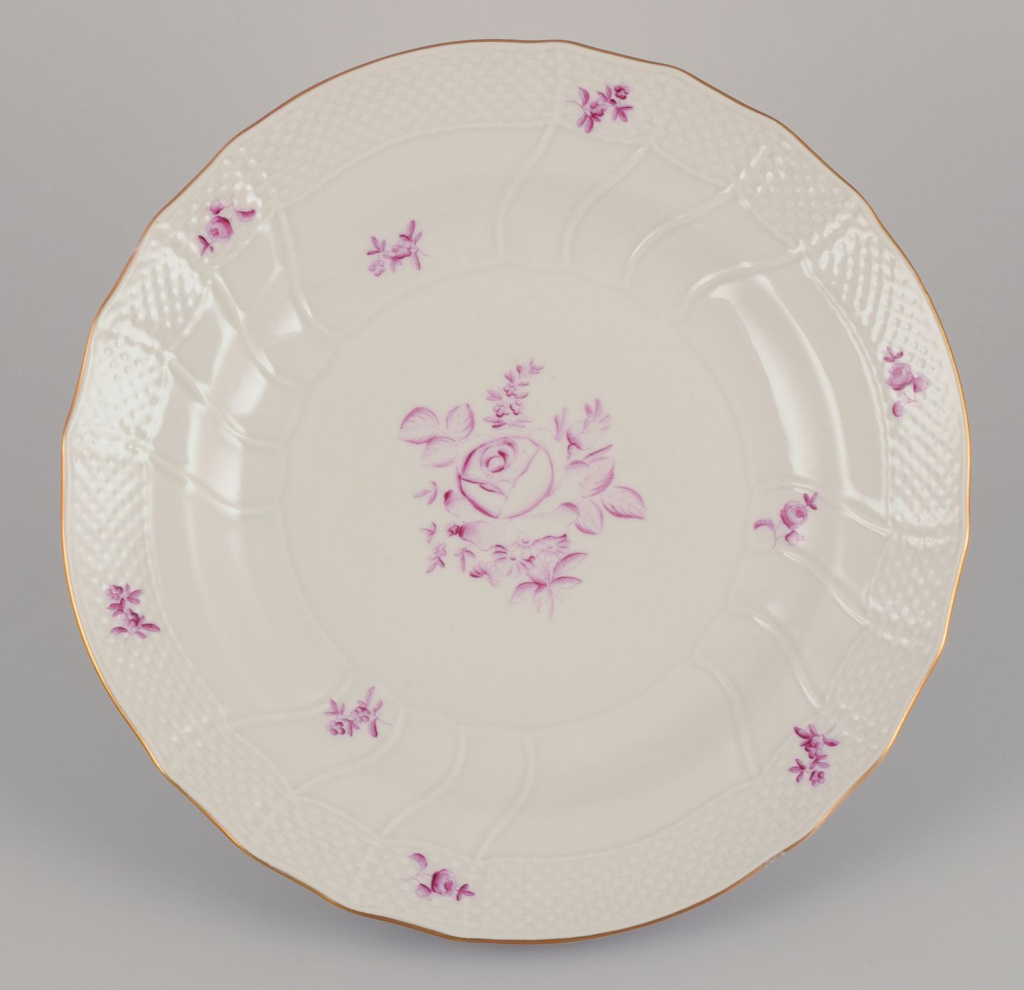 Herend, Ungarn. Et sæt på fire middagstallerkner. Håndmalet med lilla blomstermotiver. Guldkant. Midt 1900-tallet. Stemplet. Perfekt stand. Mål: D 25,5 cm. x H 3,5 cm.