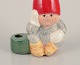 Lisa Larson for Gustavsberg. Lysestage. Siddende nisse. Sent 1900-tallet. I perfekt stand. Signeret. Måler: B 9,0 cm. x H 13,3 cm.