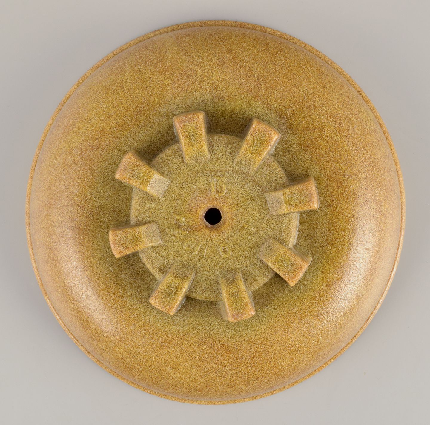 A. D. Copier (1901-1991), hollandsk keramiker. Urtepotteskjuler i keramik. Glasur i gulgrønne nuancer. Industriel design. 1930/40’erne. Stemplet. Perfekt stand. Mål: D 21,5 cm. x H 7,4 cm.