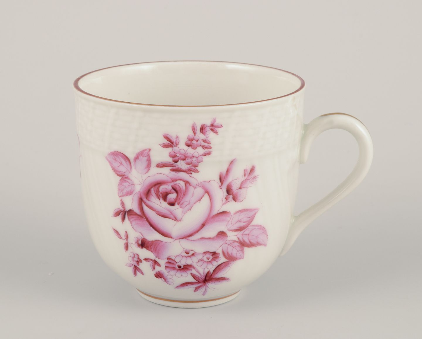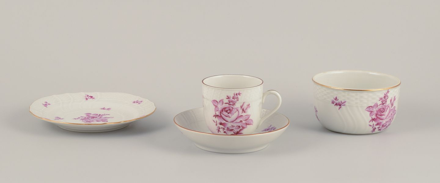 Bestående af tre kaffekopper med tilhørende underkopper samt tre kagetallerkner og en sukkerskål.