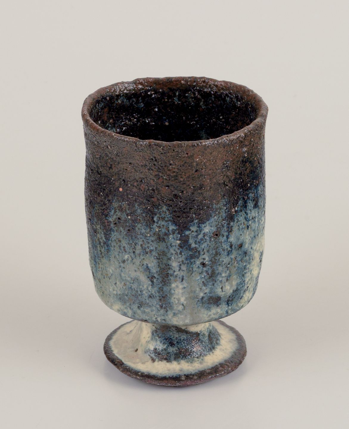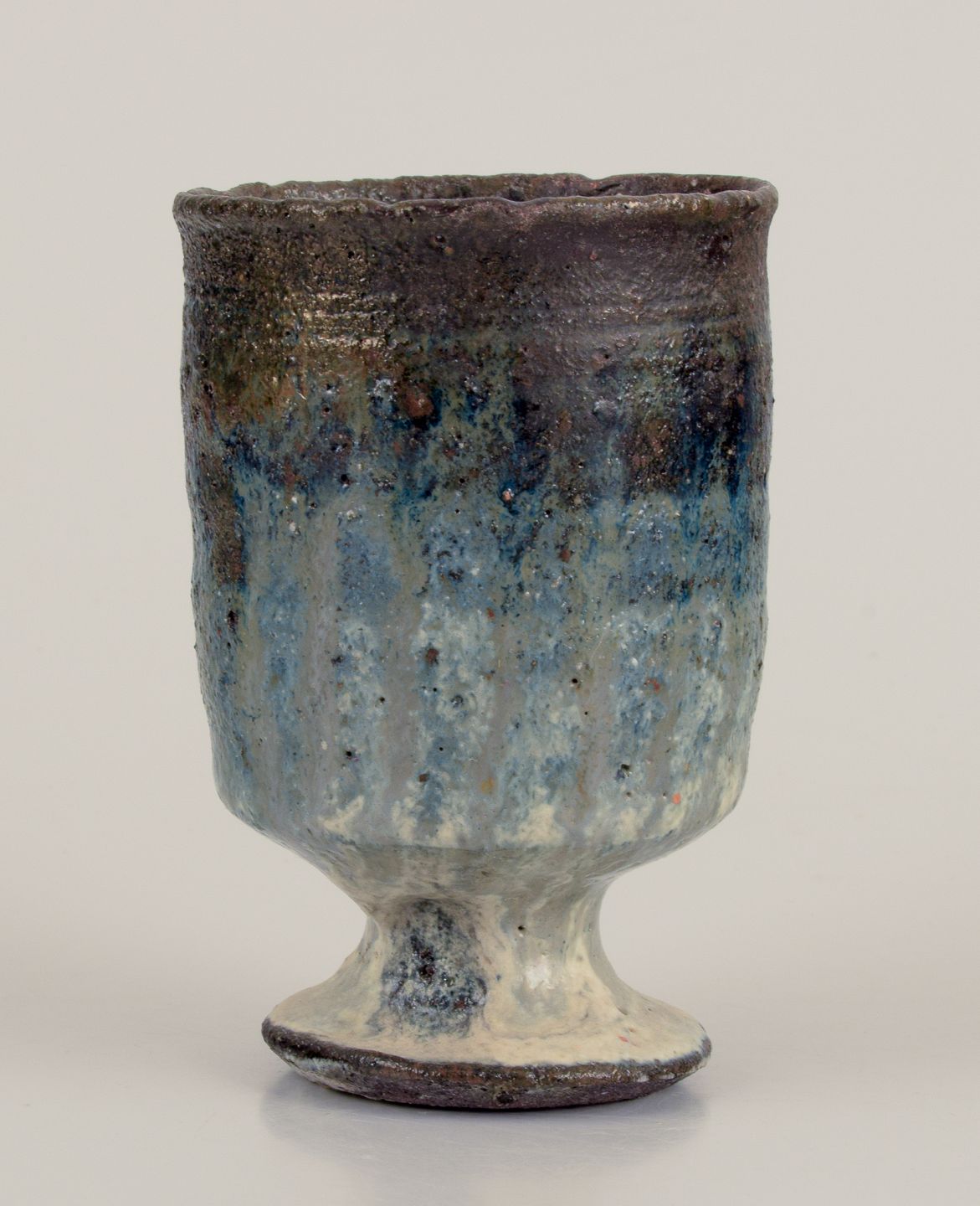 To bægre i keramik, raku teknik, flydende lava glasur i blågrå toner.