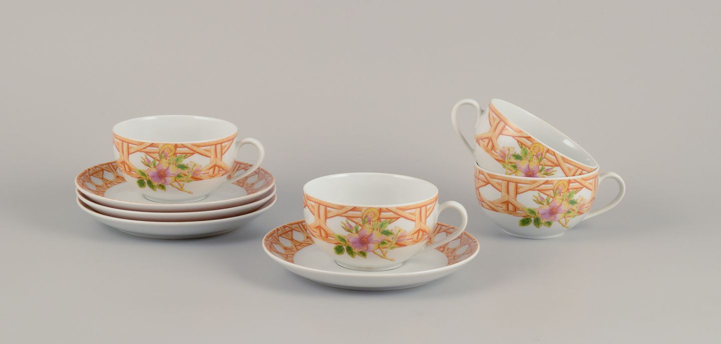 Christian Dior, Paris. Fire par kaffekopper. Blomstermotiv. Sent 1900-tallet. Stemplet. Perfekt stand. Kop: D 9,0 cm. uden hank x H 5,0 cm. Underkop: D 14,7 cm.