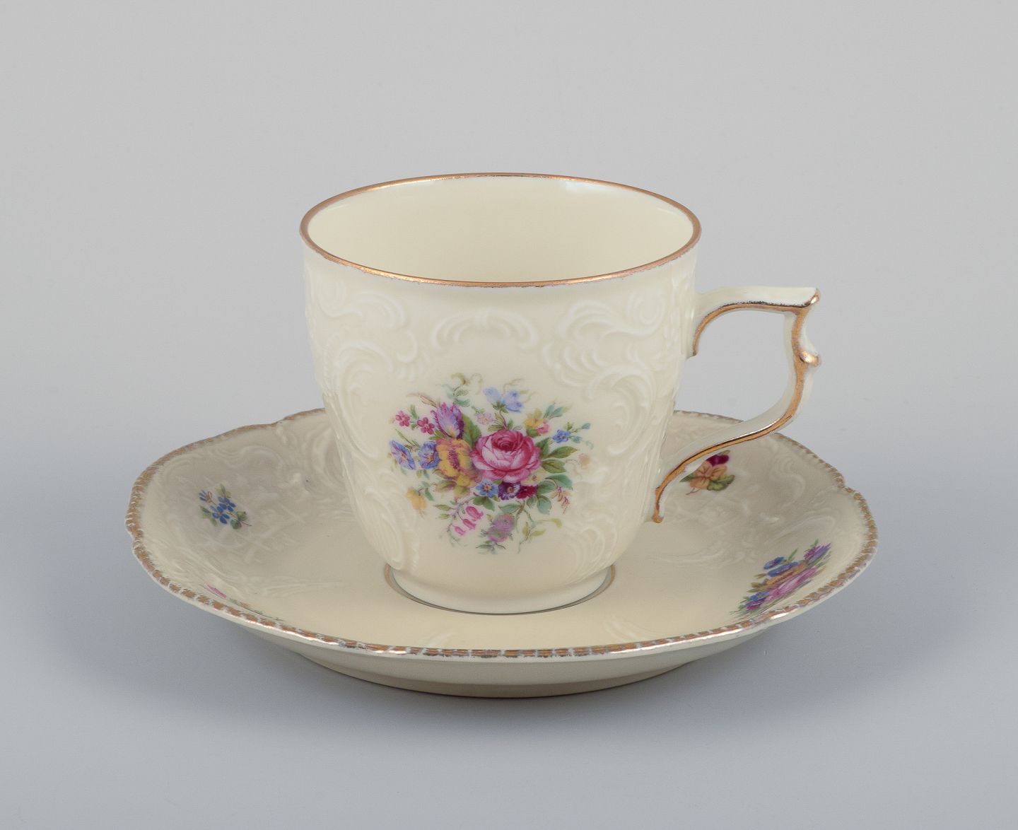 Dekoreret med polykrome blomstermotiver.
