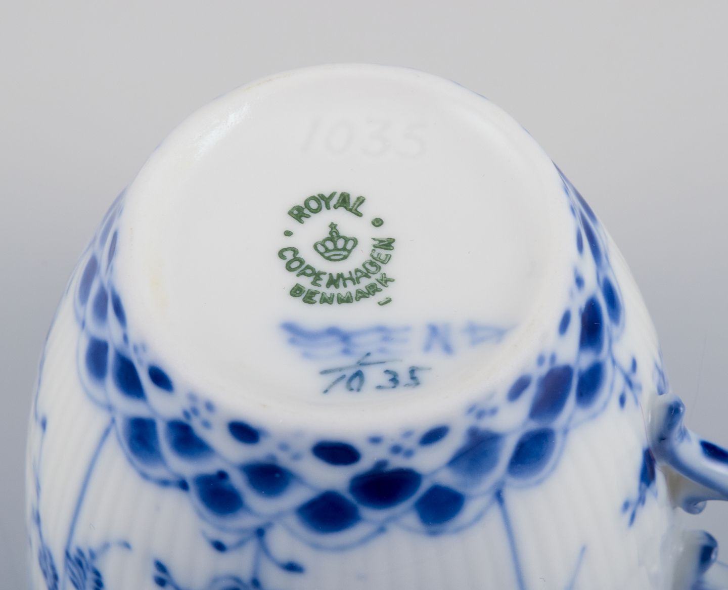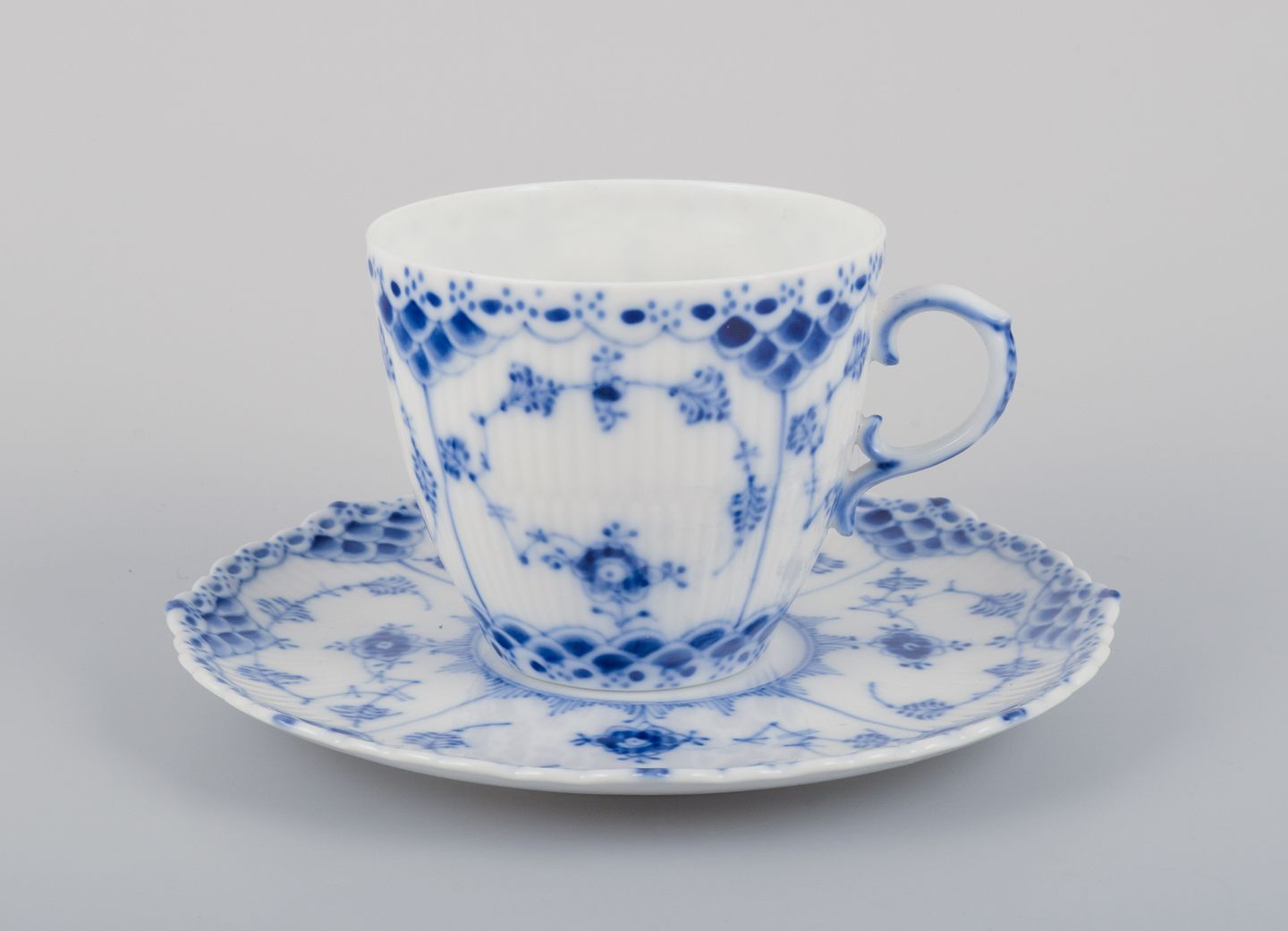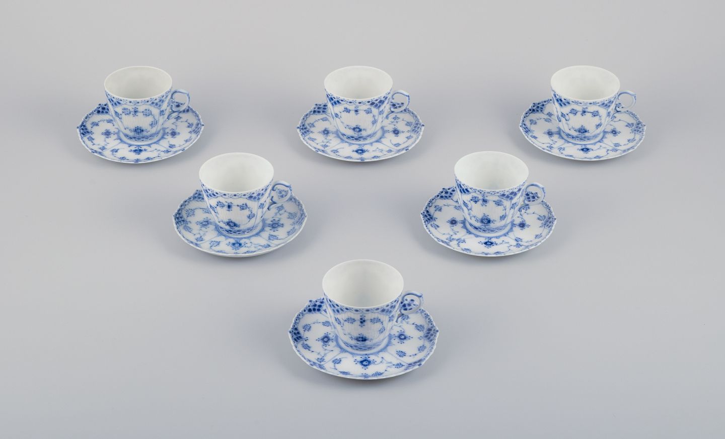 Royal Copenhagen Musselmalet Helblonde, seks par kaffekopper.