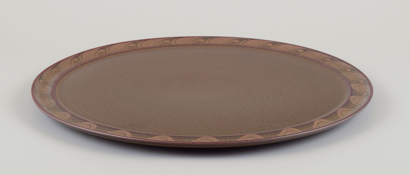 Timo Sarpaneva for Rosenthal. ”Kaari”. En rund bakke i porcelæn. Brun glasur med gulddekoration. 1980’erne. Stemplet. I perfekt stand. Fremstår som nyt. Mål: D 35,0 cm. x H 1,6 cm.