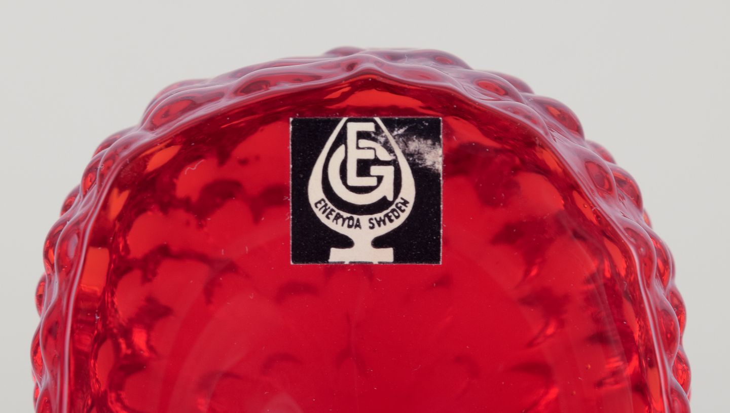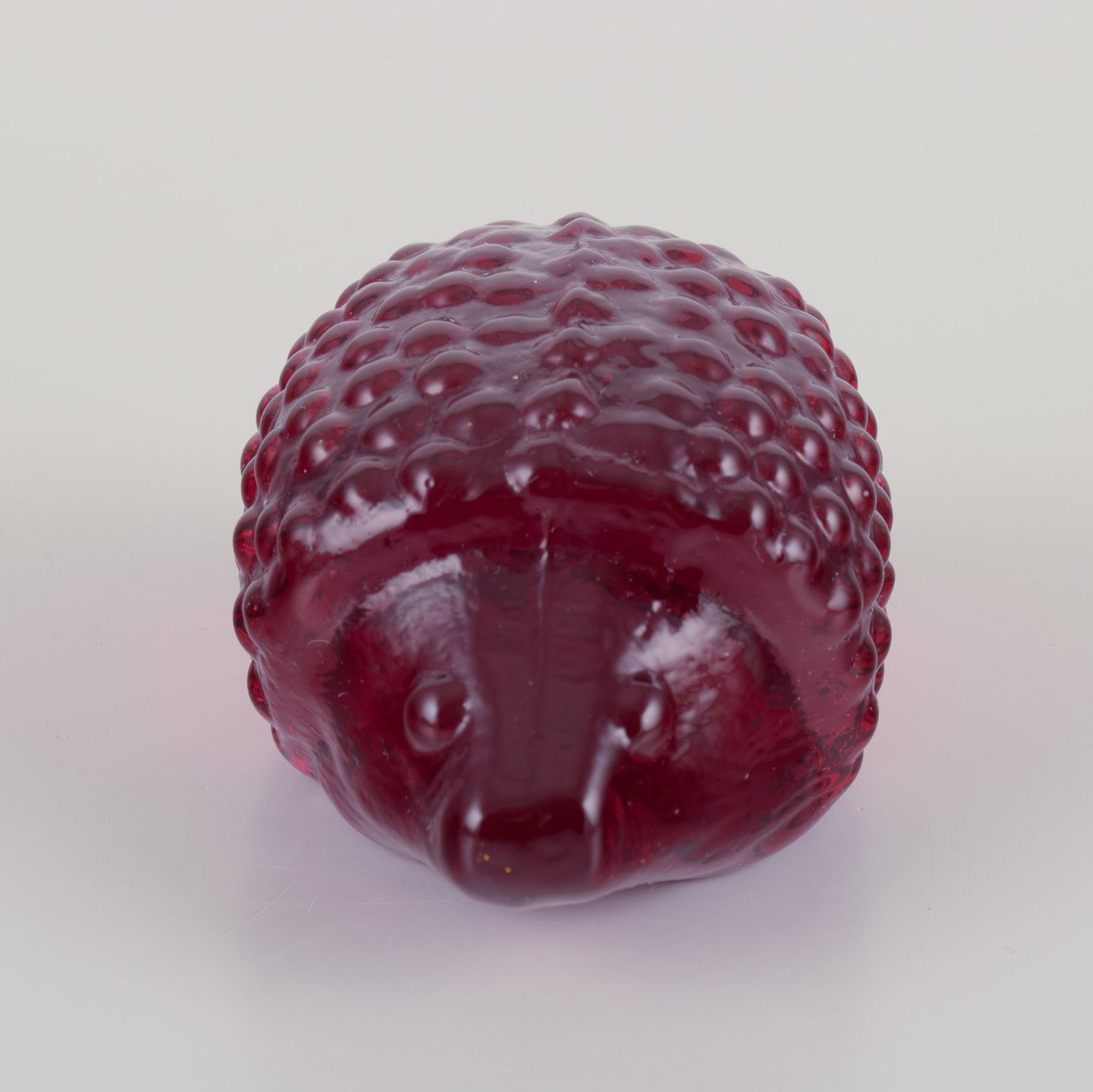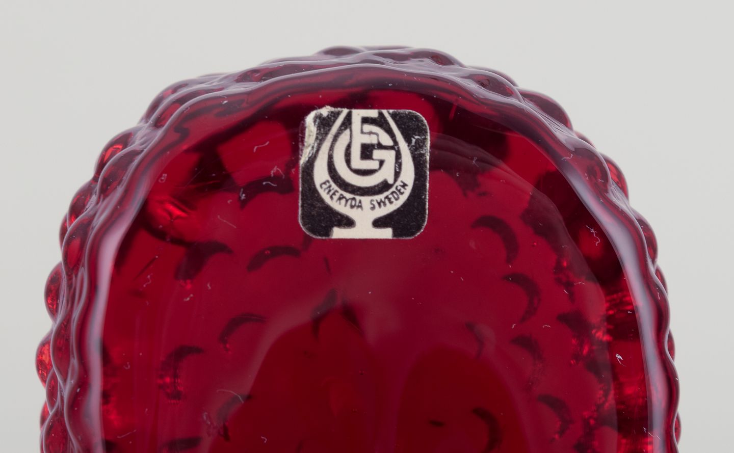 Svensk glaskunstner, Eneryda, Sverige. To pindsvin i to nuancer af rødt kuntglas. Ca. 1970. Mærkat. Perfekt stand. Mål: L 10,0 cm. B 6,0 cm. x H 5,5 cm.
