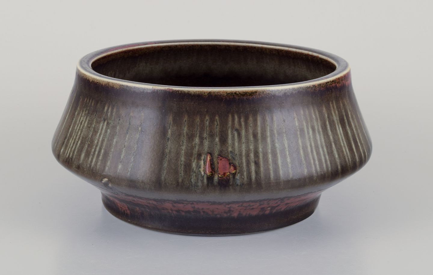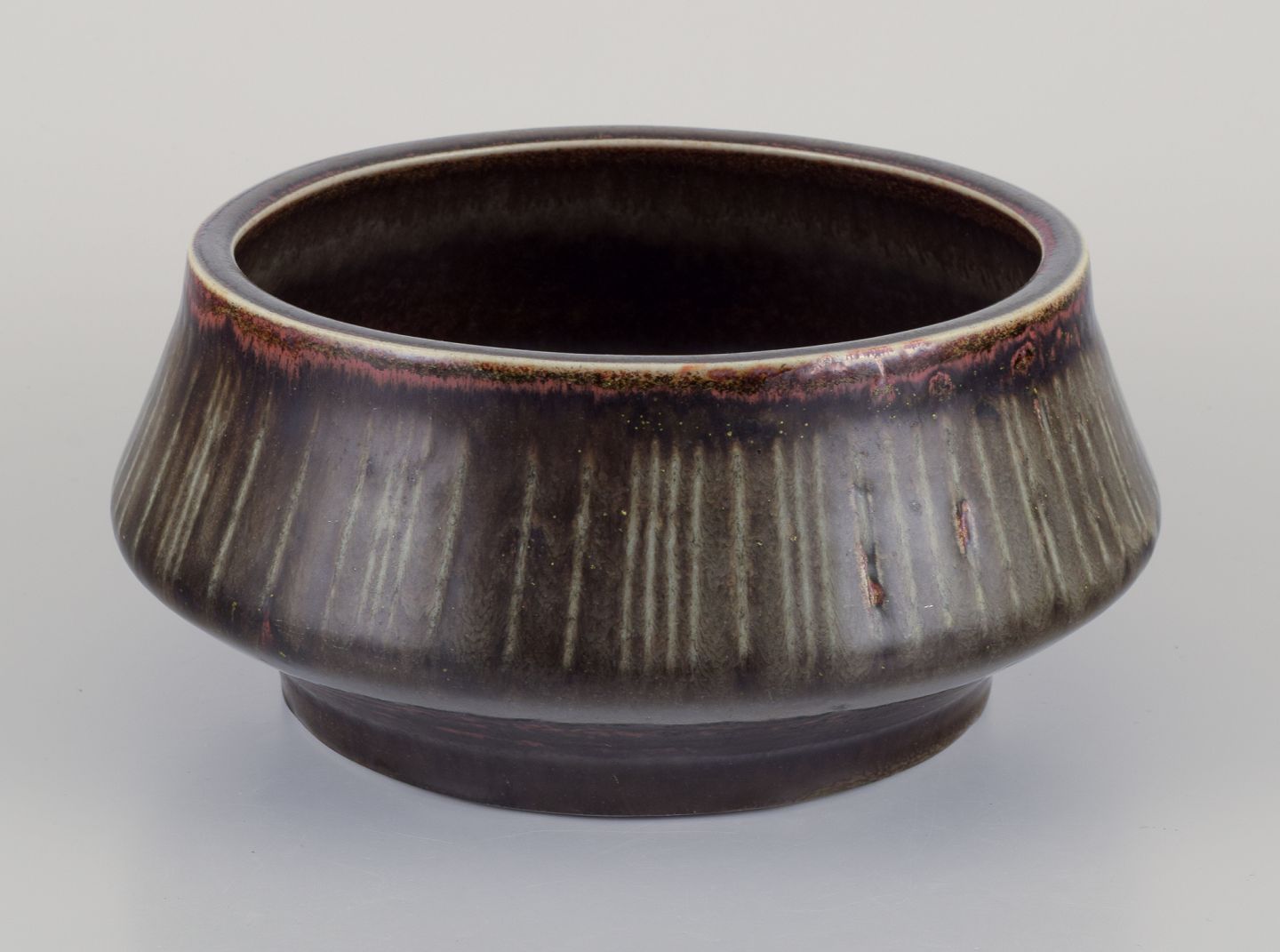 Carl Harry Stålhane for Rörstrand Ateljé, Sverige. Stor keramikskål. Glasur i grønbrune nuancer. Ca. 1960. Stemplet. Perfekt stand. Anden sortering. Mål: D 23,0 cm. x H 10,5 cm.