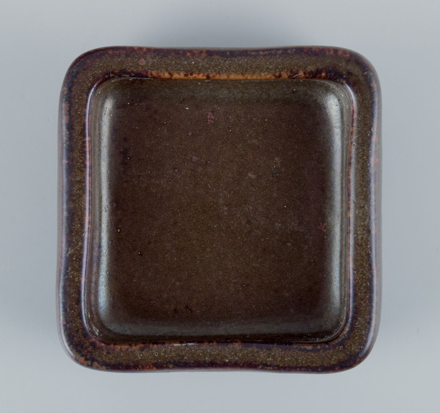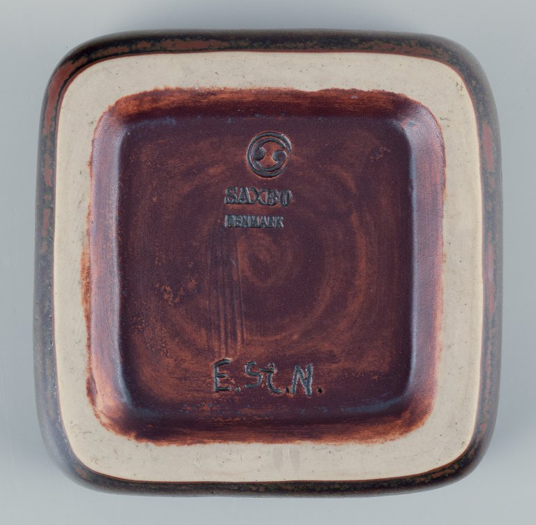Eva Stæhr-Nielsen (1911-1976) for Saxbo, Danmark. Keramikskål, aubergineglasur. Ying Yang stempel. Midt 1900-tallet. Perfekt stand. Mål: B 12,5 cm. x H 4,0 cm.