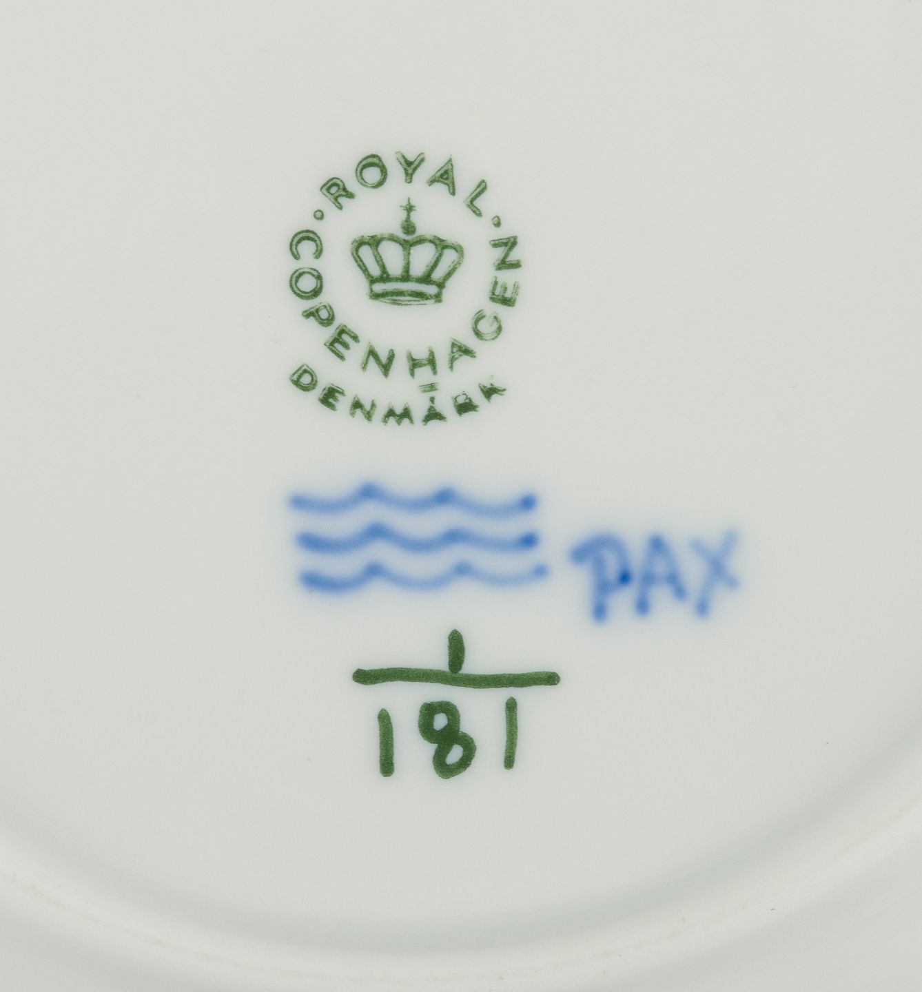 Royal Copenhagen Musselmalet Riflet, seks kagetallerkener i håndmalet porcelæn. Modelnummer 1/181. Datering: 1967 I perfekt stand. Signeret. Første sortering. Mål: 15,5 cm.