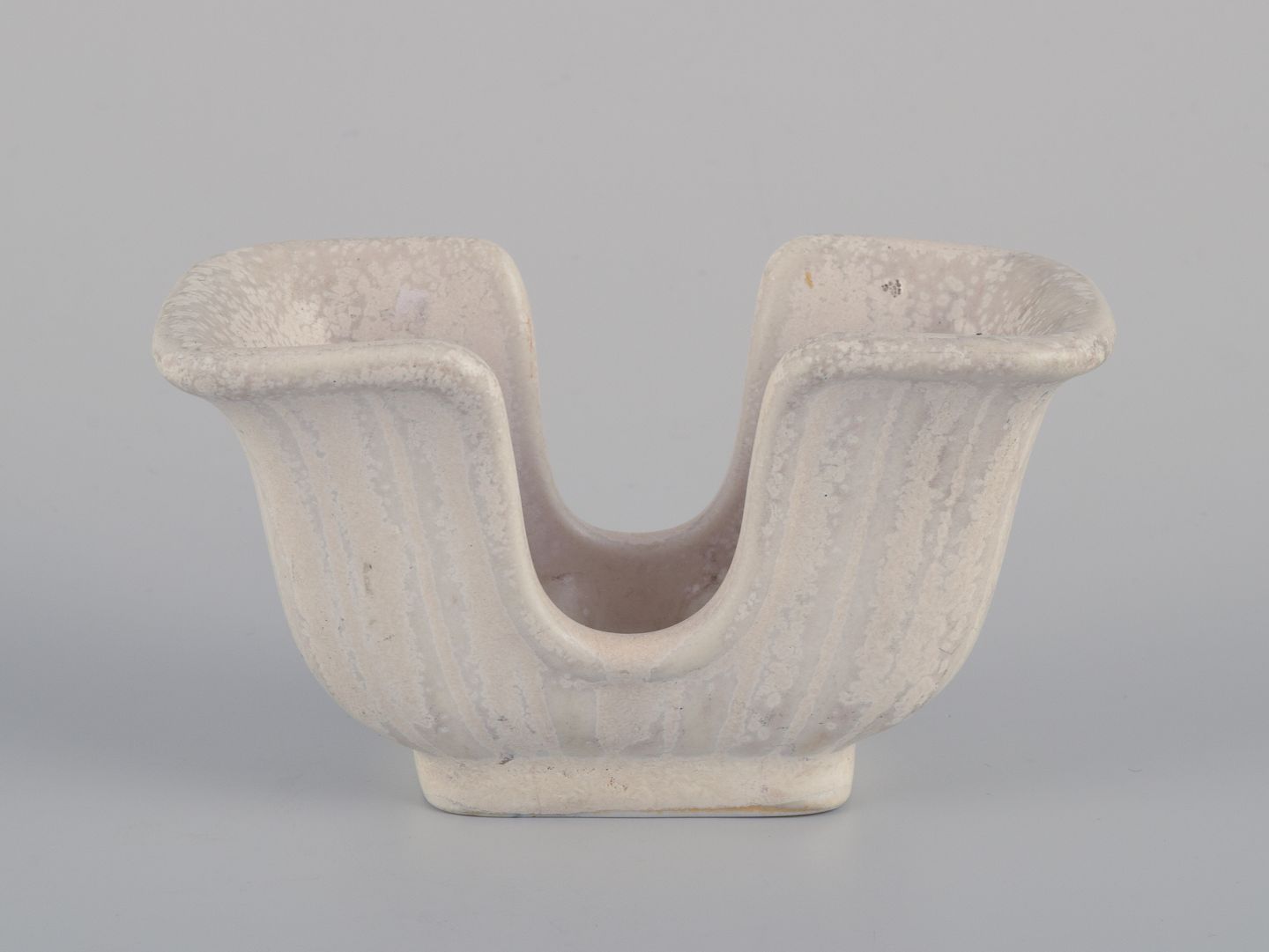 Gunnar Nylund for Rörstrand. Lille keramikvase. Krystalglasur i lyse toner. Midt 1900-tallet. Stemplet. Perfekt stand. Anden sortering. Mål: L 10,7 cm. x B 5,0 cm. x H 6,0 cm.