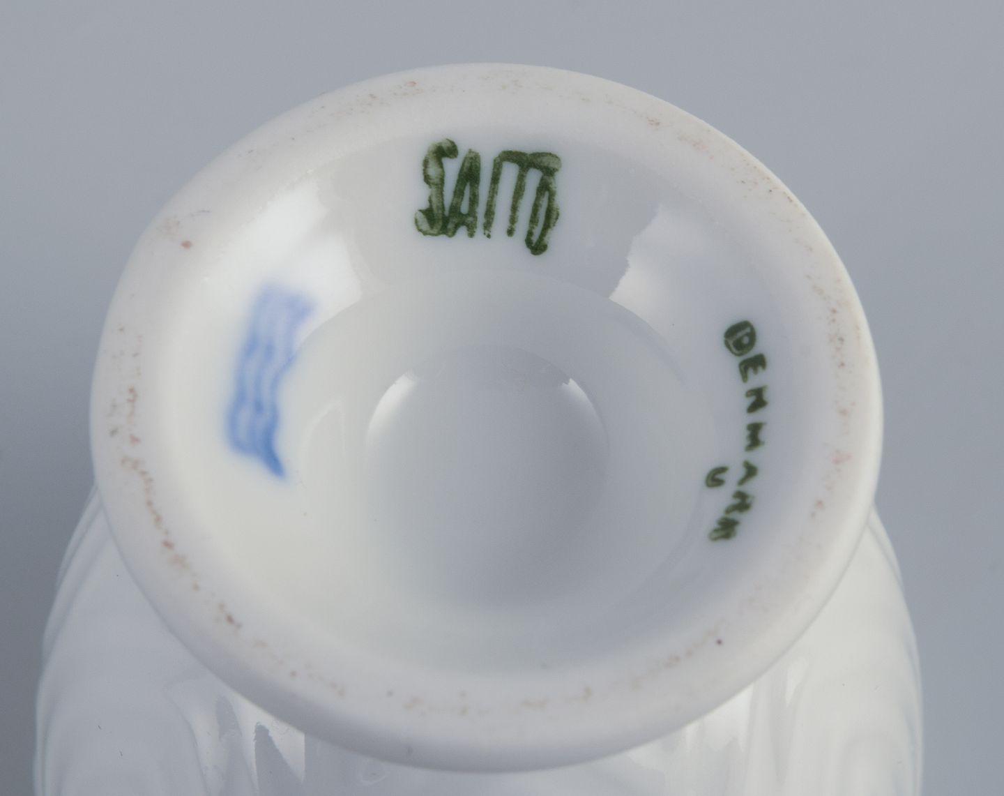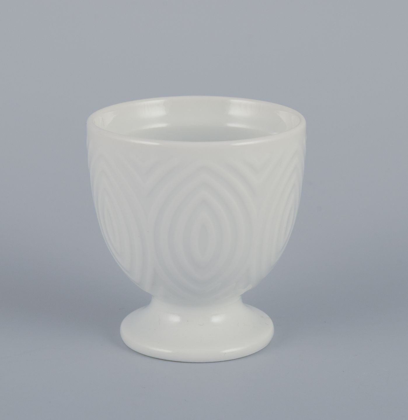 Axel Salto for Royal Copenhagen. Fire æggebægre i hvidt porcelæn. Datering: Ca. 1960’erne. Tegnet af Axel Salto i 1956. I perfekt stand. Første sortering. Mål: H 5,5 cm. x D 5,0 cm.