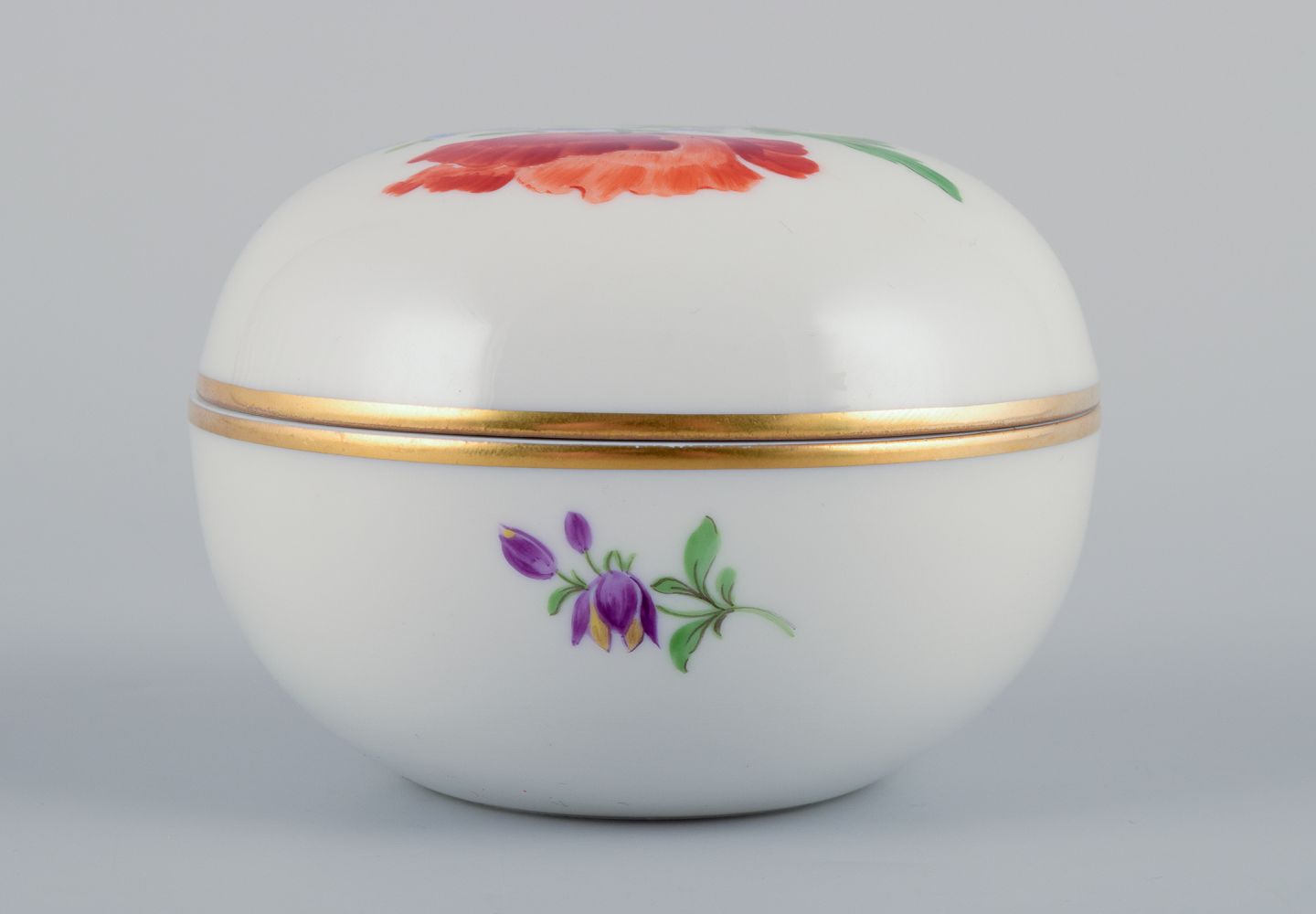 Meissen, lågkrukke i porcelæn. Polykrome blomstermotiver i overglasur.