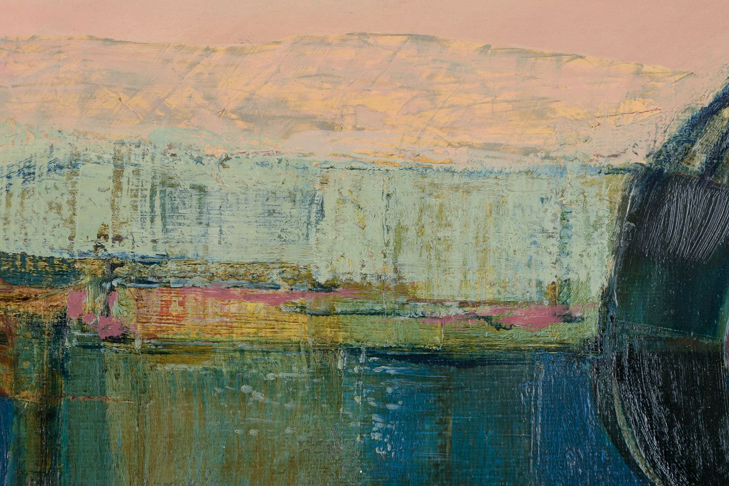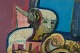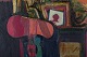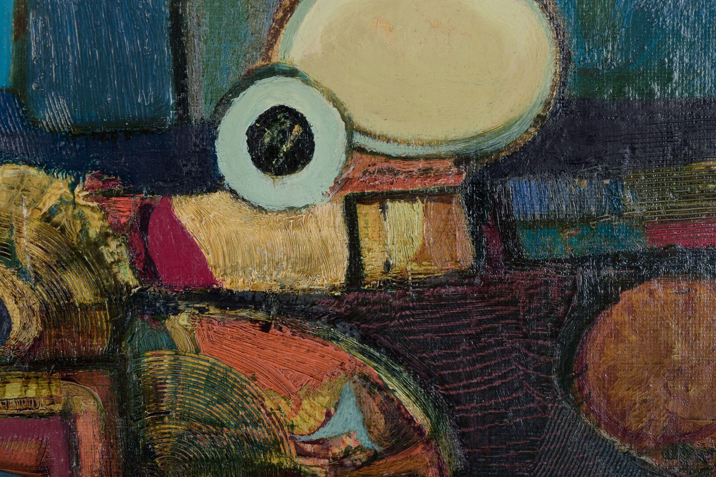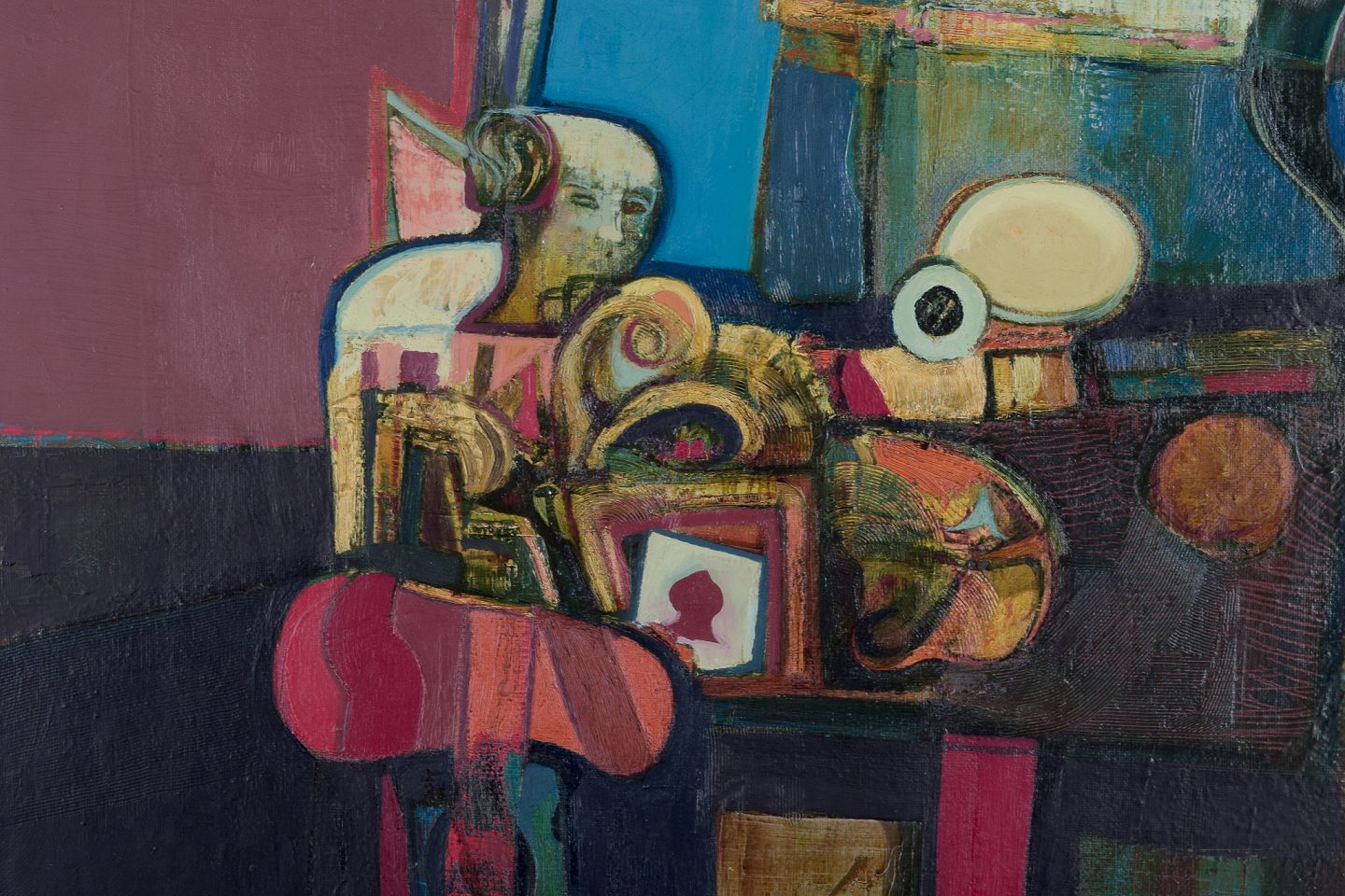 Olie på lærred. Abstrakt komposition med mandsperson.