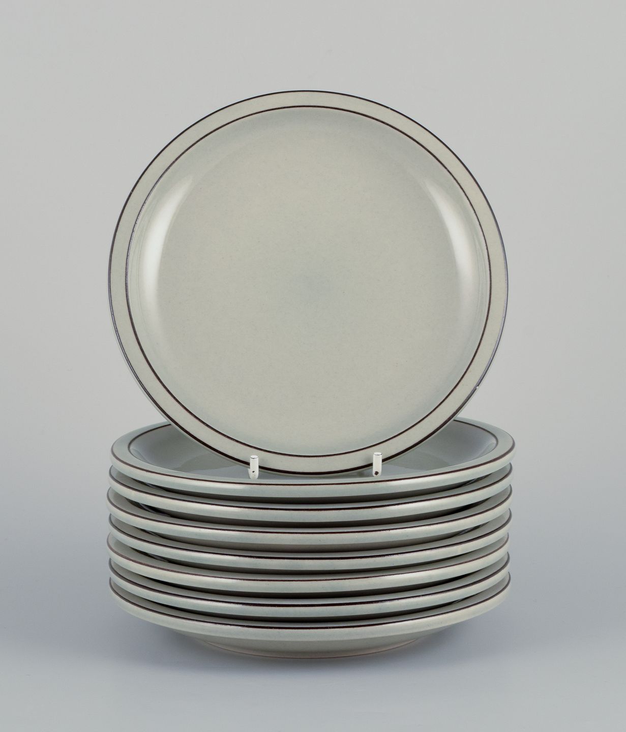 Bing & Grøndahl ”Colombia”. Et sæt på otte tallerkner i stentøj. 1970’erne. Model: 306. Stemplet. Perfekt stand. Første sortering. Mål: D 16,5 cm.