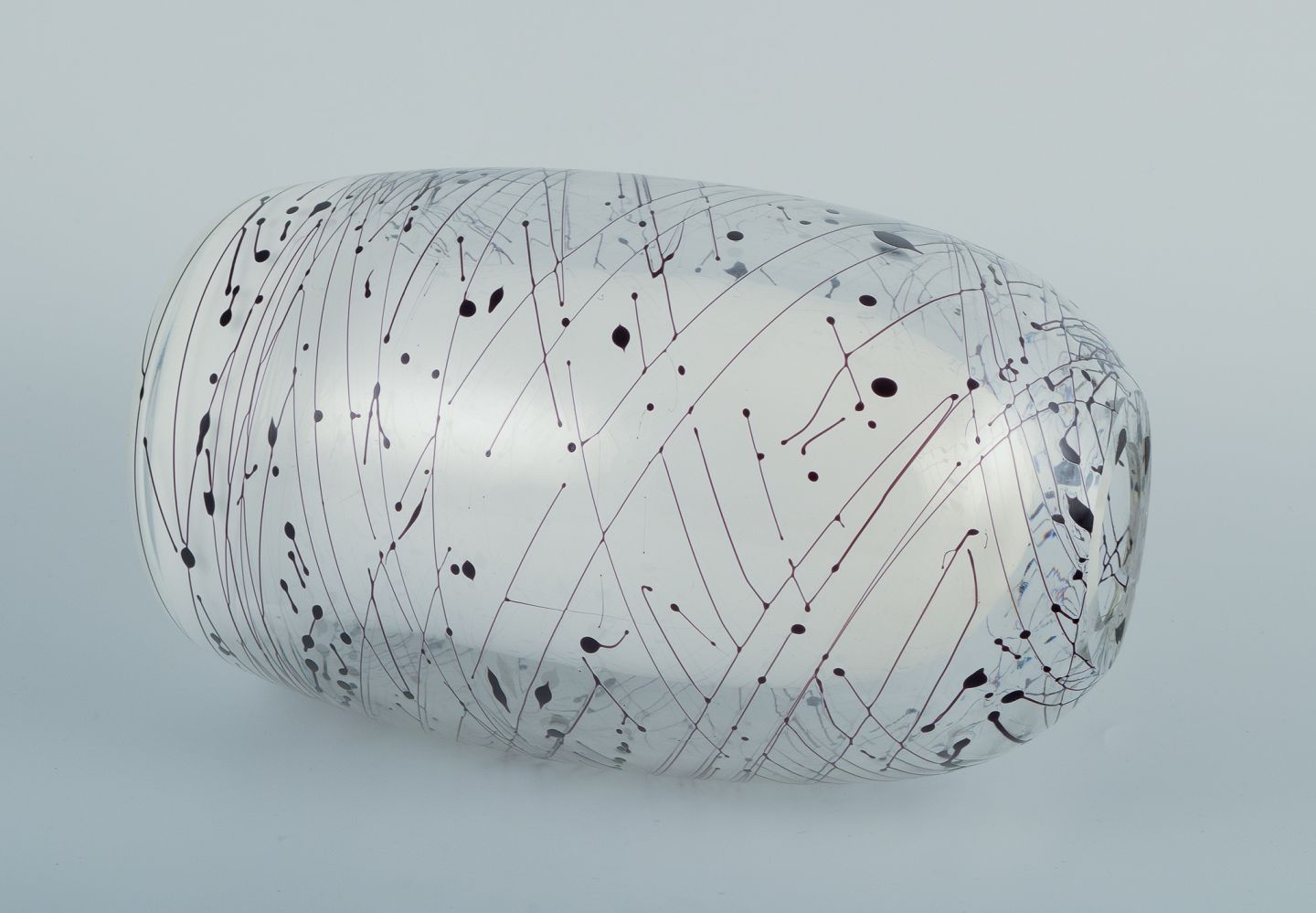 Unika kunstglasvase. Hvidt glas indvendigt.