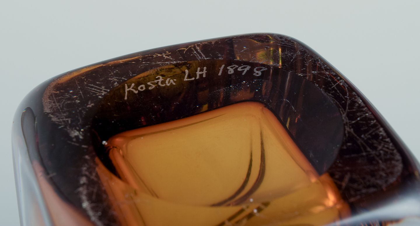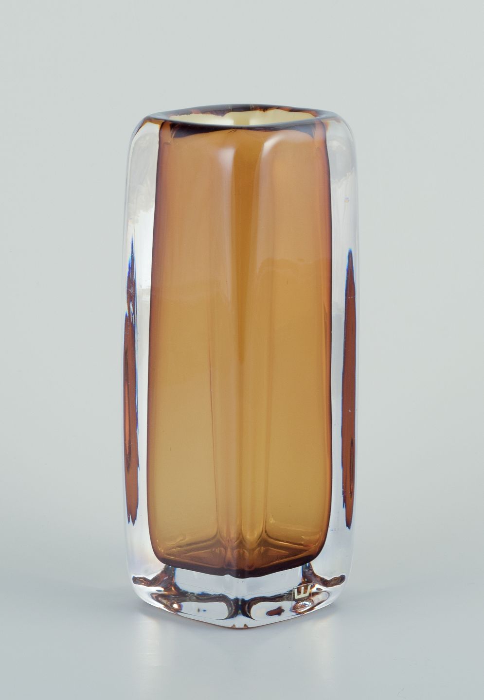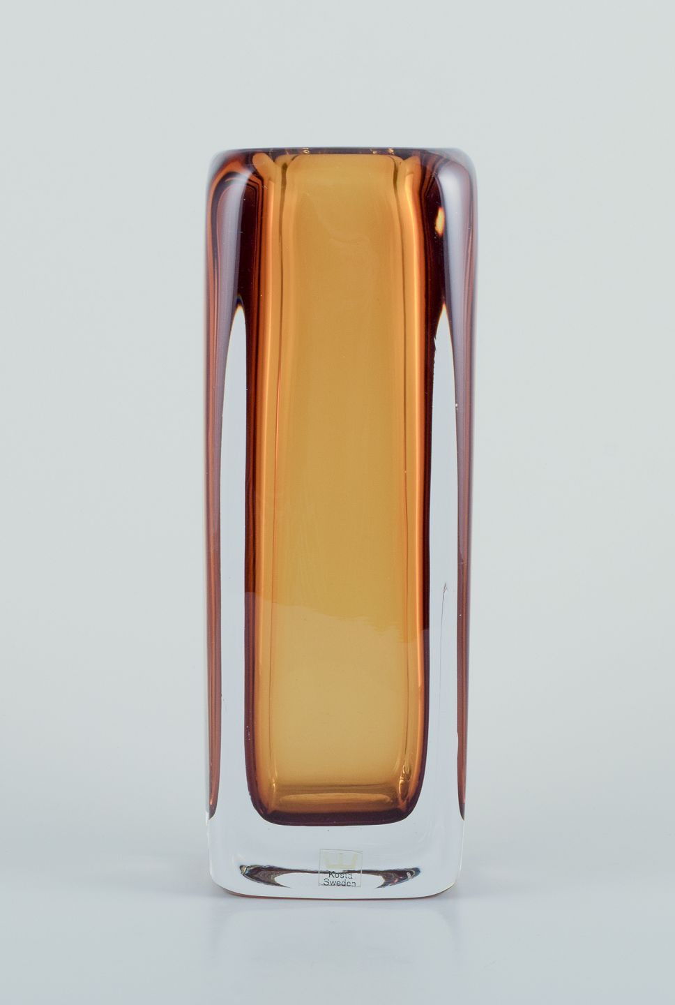 Vicke Lindstrand for Kosta Boda, Sverige. Kunstglasvase i gult og klart glas. Mundblæst.